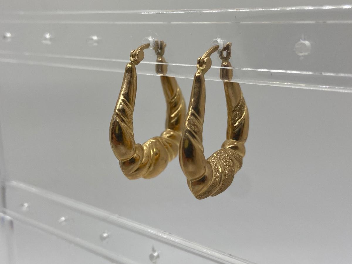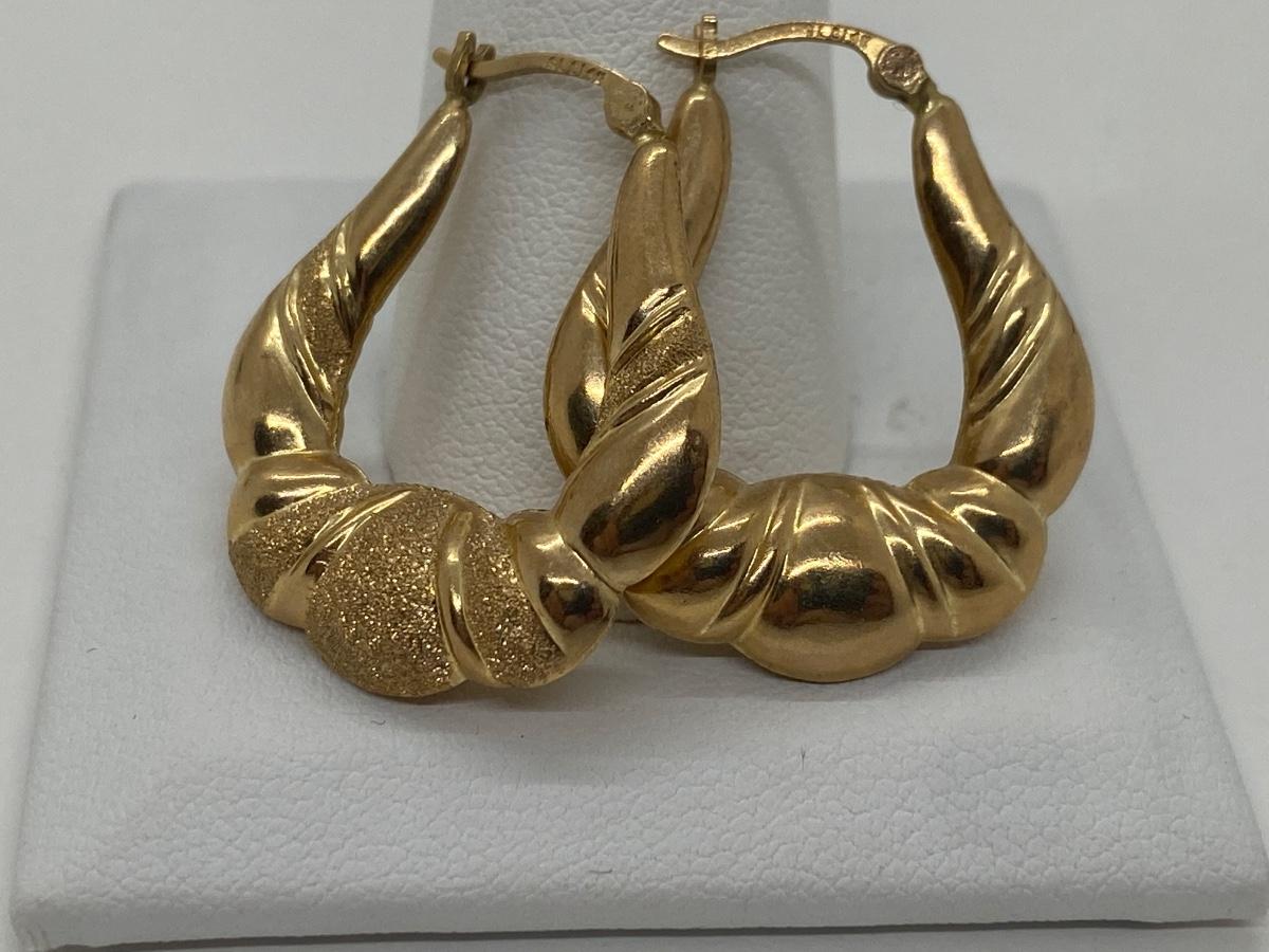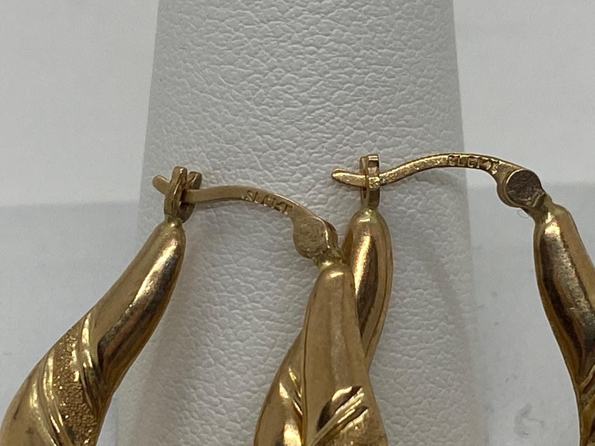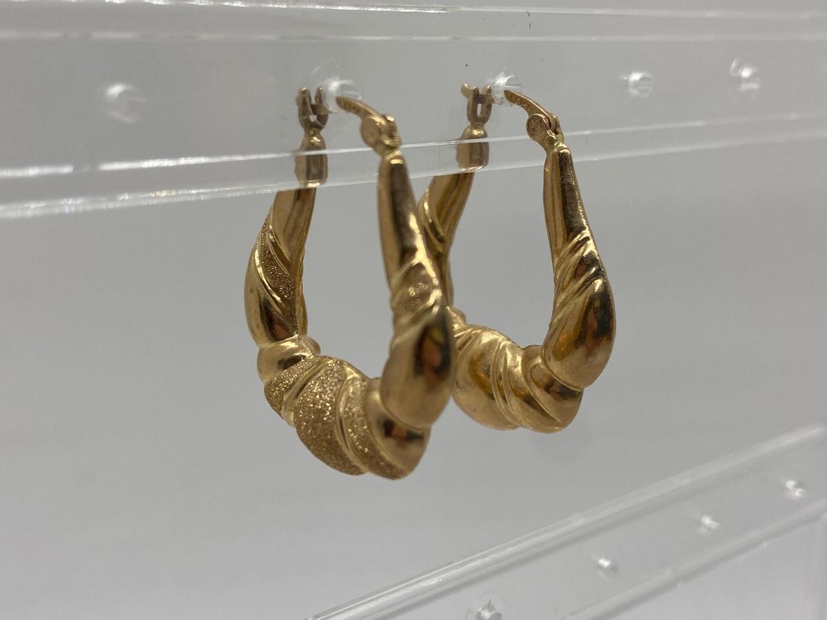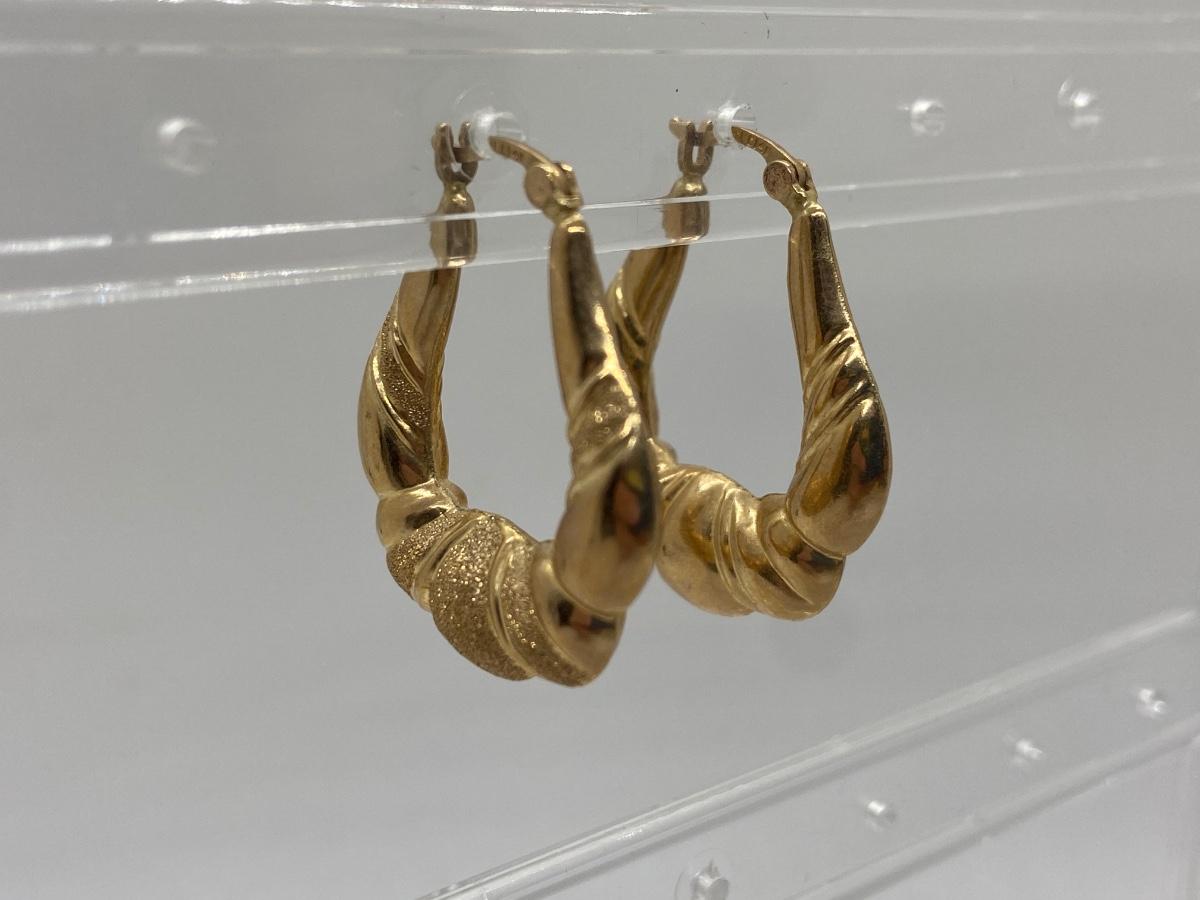Lot 6: 14k SLC Yellow Gold Shrimp Scalloped Pierced Hoop Earrings with Applied Gold Flake