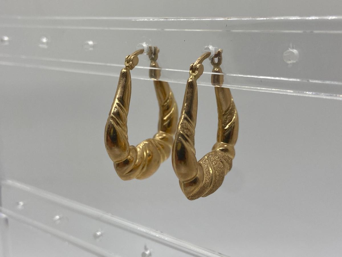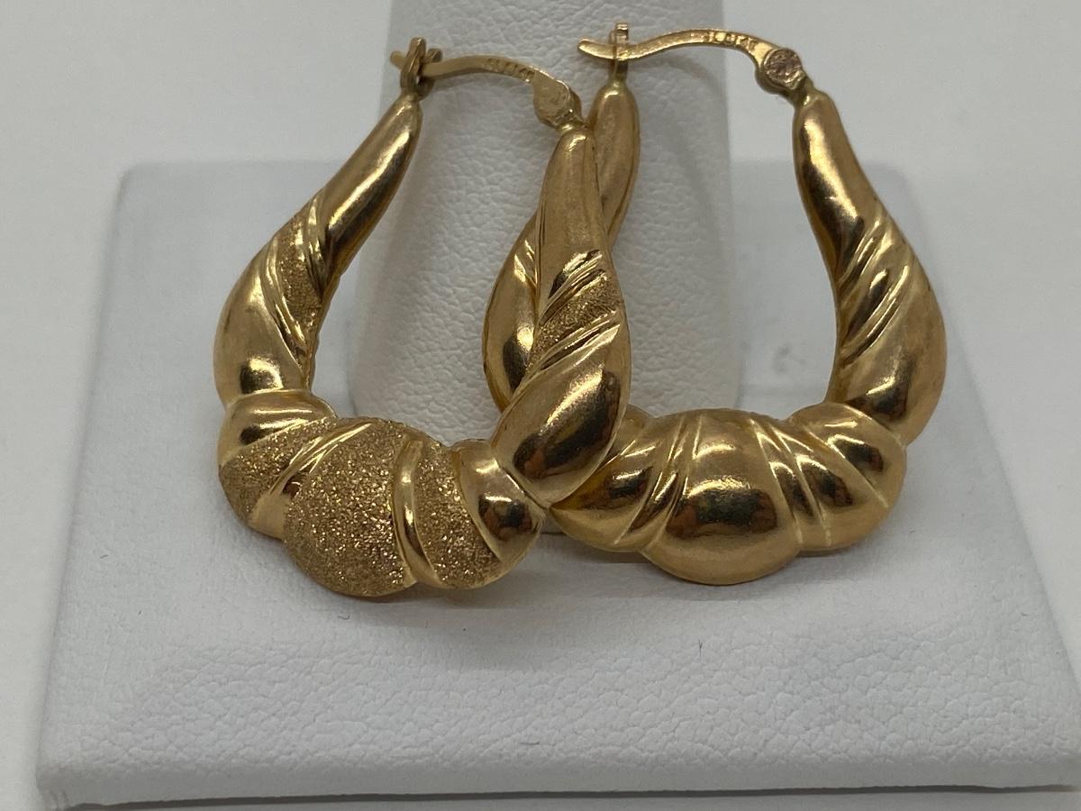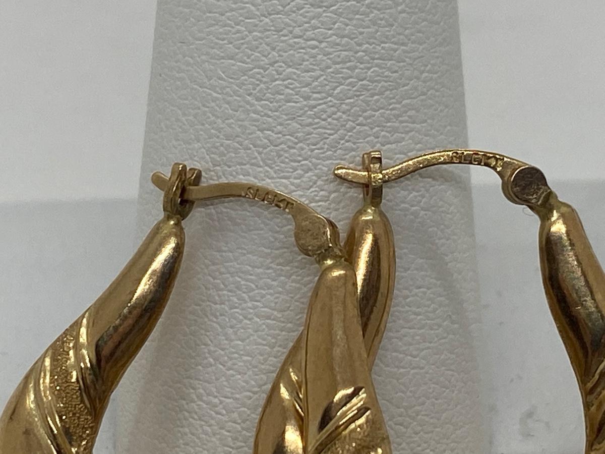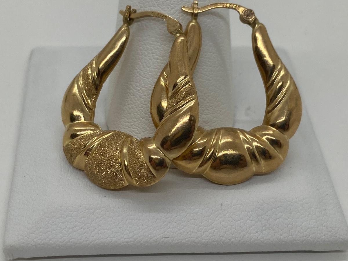Lot 6: 14k SLC Yellow Gold Shrimp Scalloped Pierced Hoop Earrings with Applied Gold Flake
