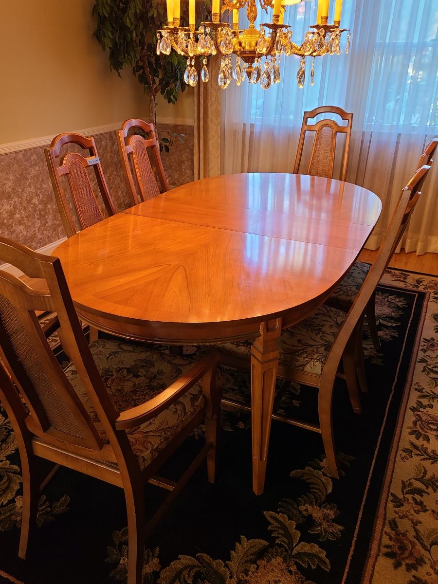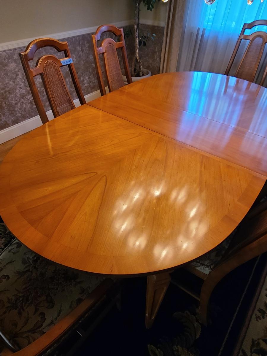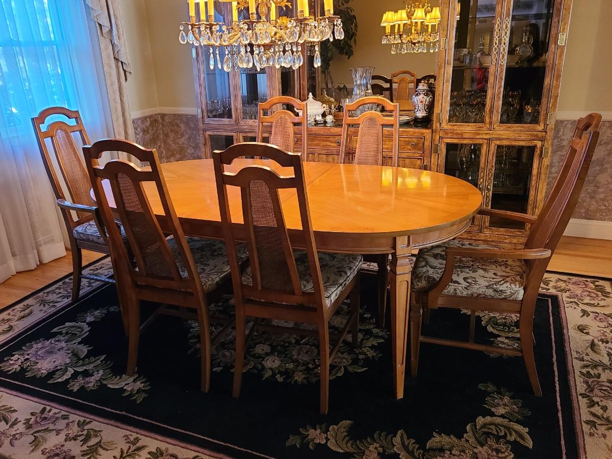 Lot 600: Dining Room Table w/6 Chairs, Two Leaves, and Protective Table Pad