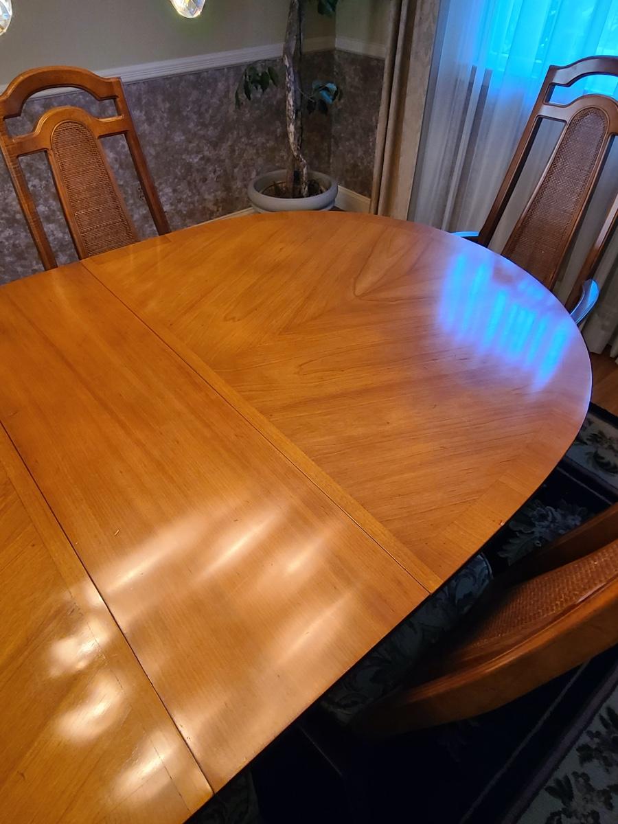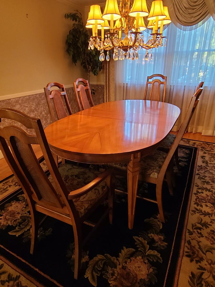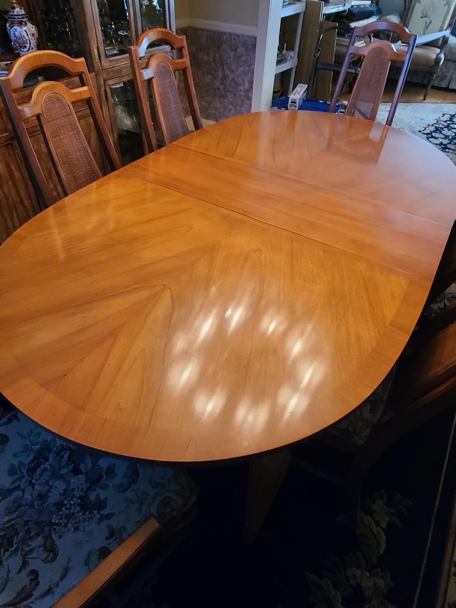 Lot 600: Dining Room Table w/6 Chairs, Two Leaves, and Protective Table Pad