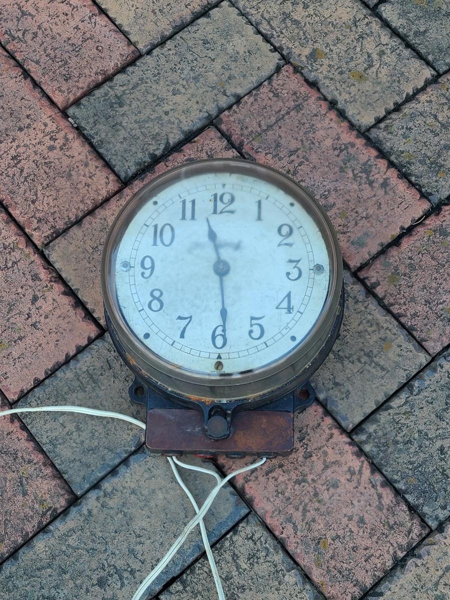 The clients relatives worked at the railroad, and this was passed down as a railroad clock through the family. It does show wear from age, but is an amazing piece of history and makes a unique display piece. This is very heavy as it is encased in a cast iron frame marked General Electric. There are close-ups of the plate on the side, so you can do your own research. Pictures were taken inside and out from every direction to show condition. Please see all pictures as they are the best representation of the items. The pictures show condition, measurements if taken, and what is included in the lot. Due to the large amount that we photograph and the time frame, we are not always able to take measurements. All items unless noted, are pre-owned and have been used. If you purchased furniture, you must bring help. We do not allow one person to carry large furniture out on their own. Bring help, tools and a truck for the safety of our client’s homes, and your personal safety. Any damages that result to the property including walls, and floors due to moving of the furniture will be charged to the buyer. Company policy. Thank you.