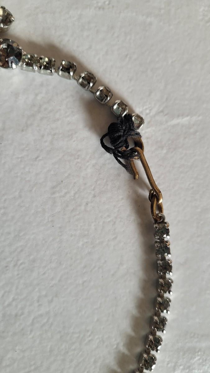The necklace has had a jump hoop attached to use as a closure. The hook also clasps around the Strand of Rhinestones.
