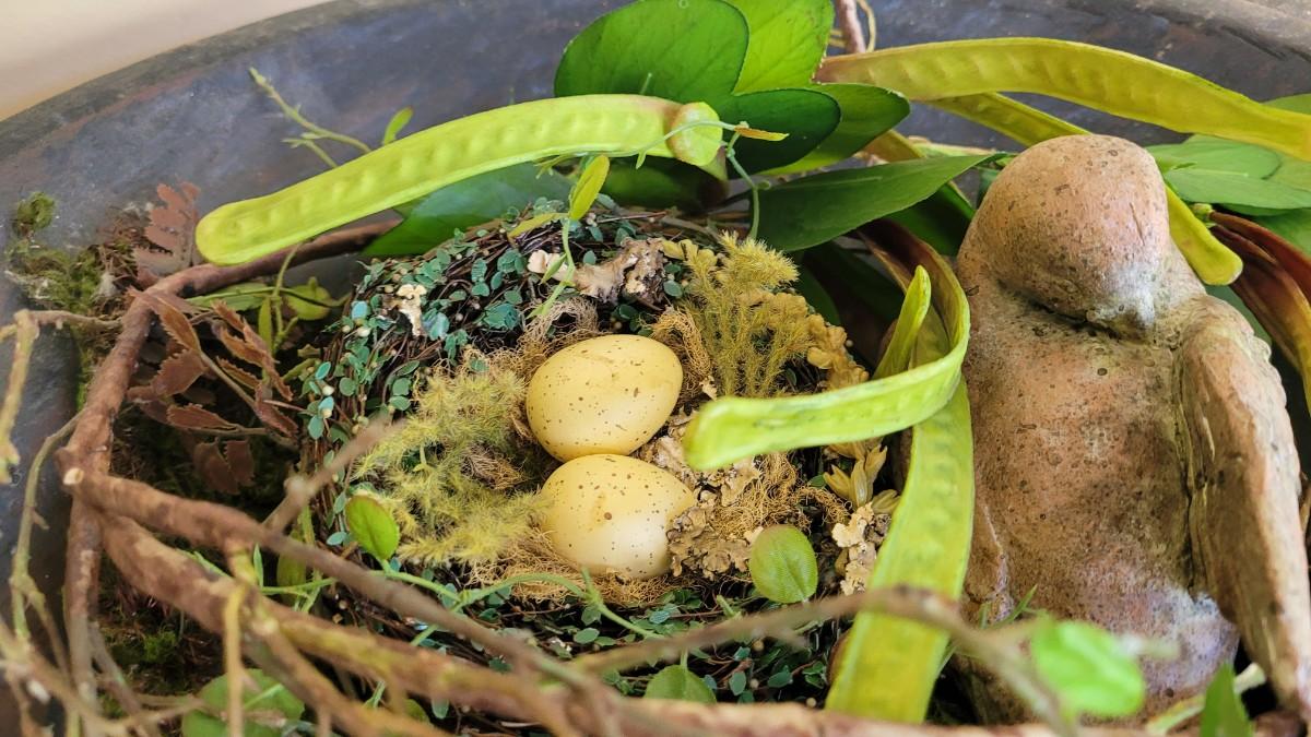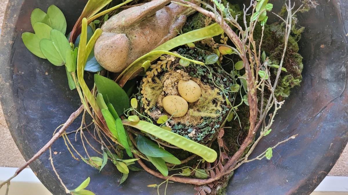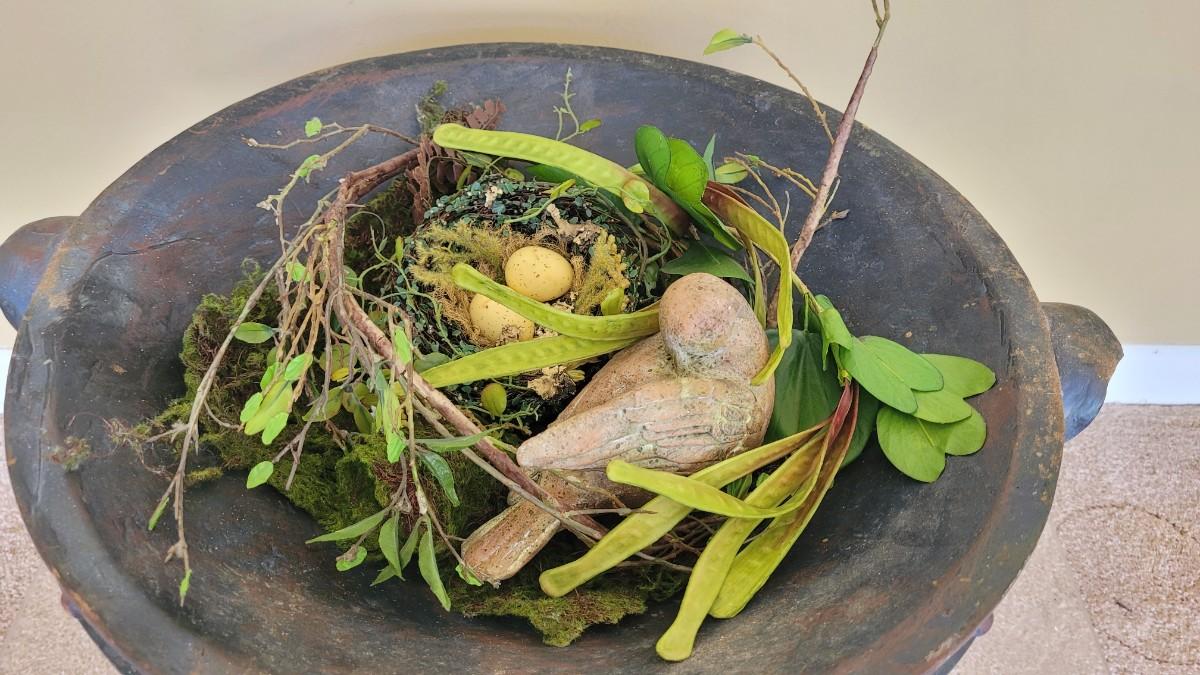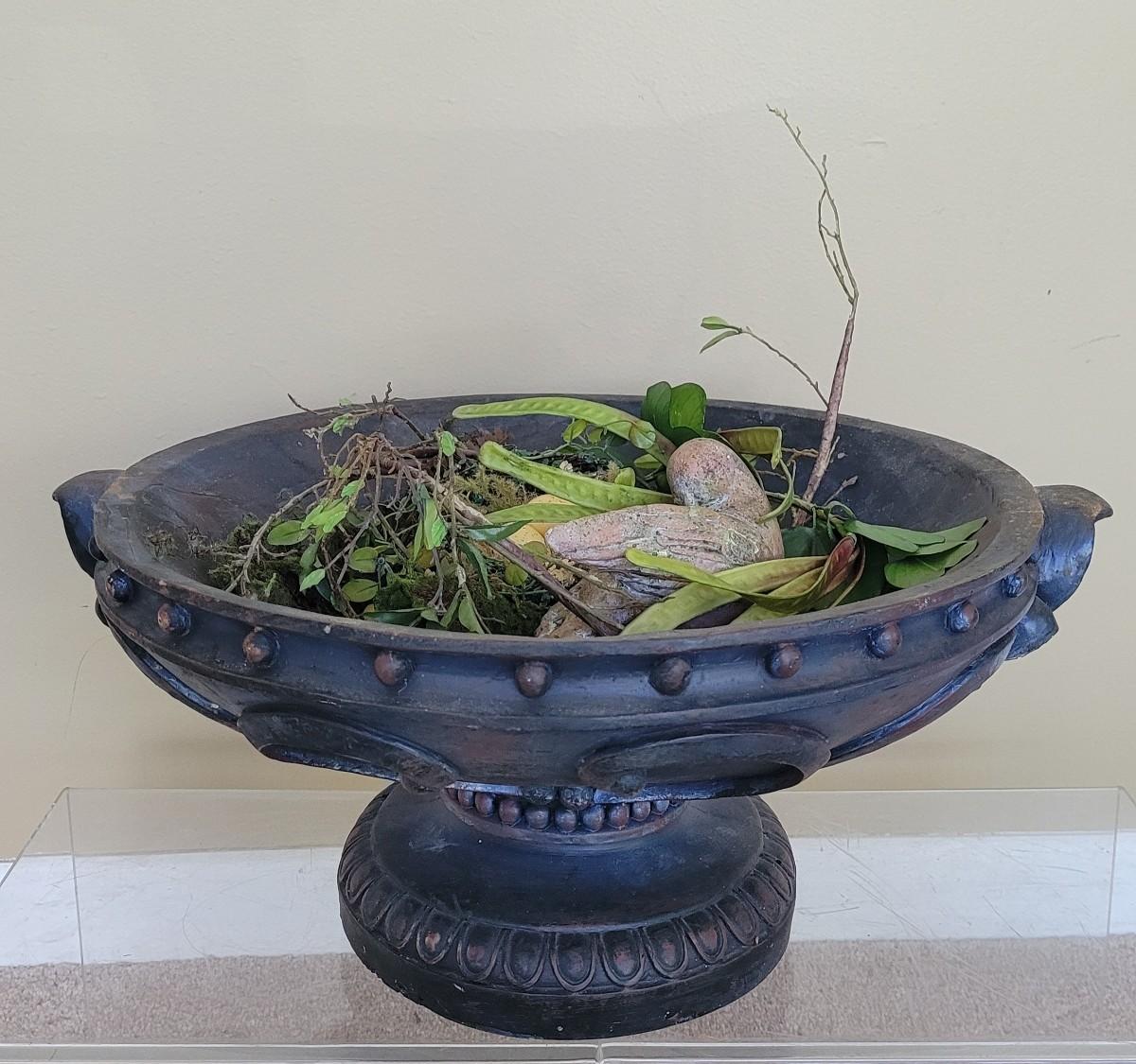 Lot 6: Spanish Revival Style Plaster Urn With Bird & Nest