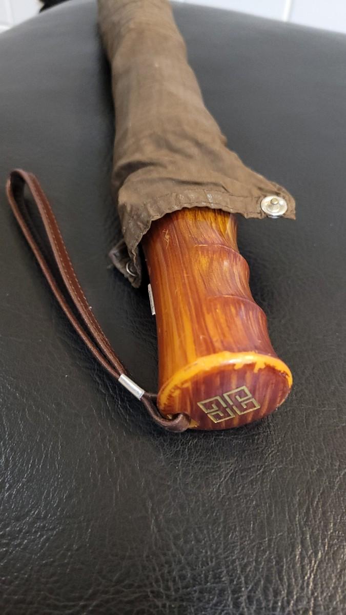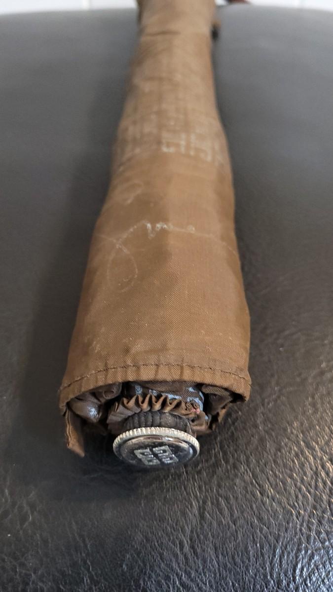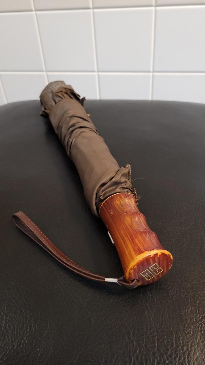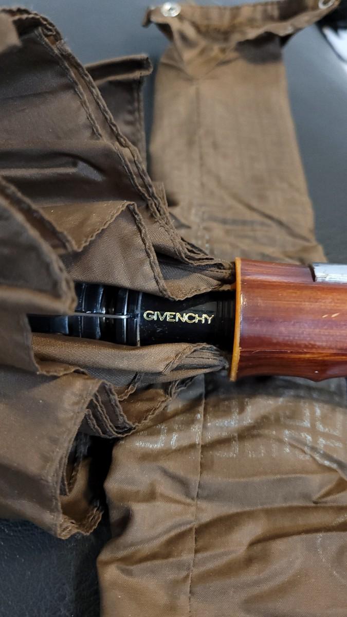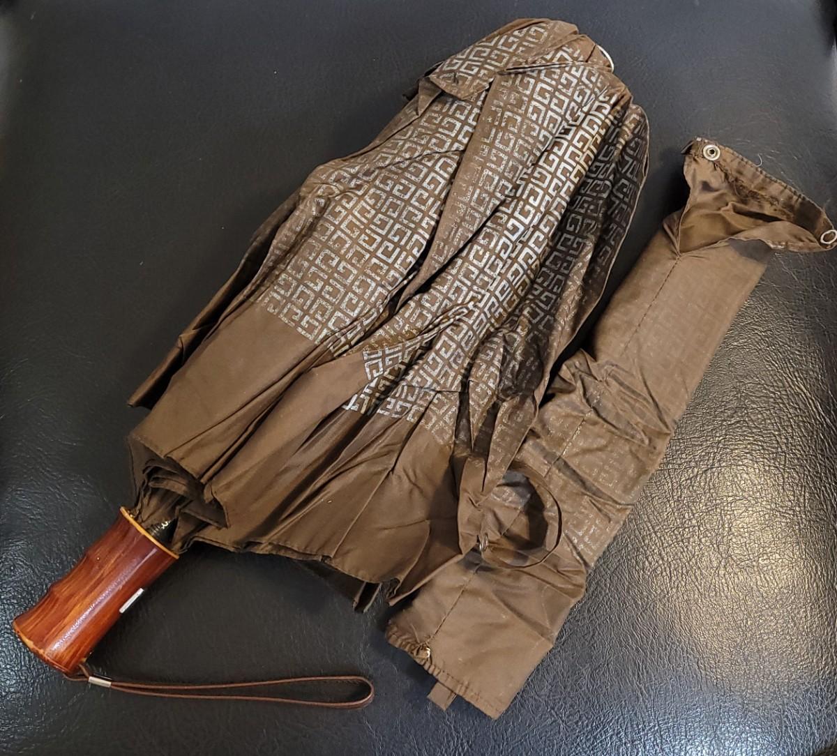 Iconic GIVENCHY Umbrella with fading "G's". Colors are brown background with light blue G's