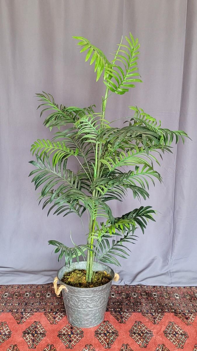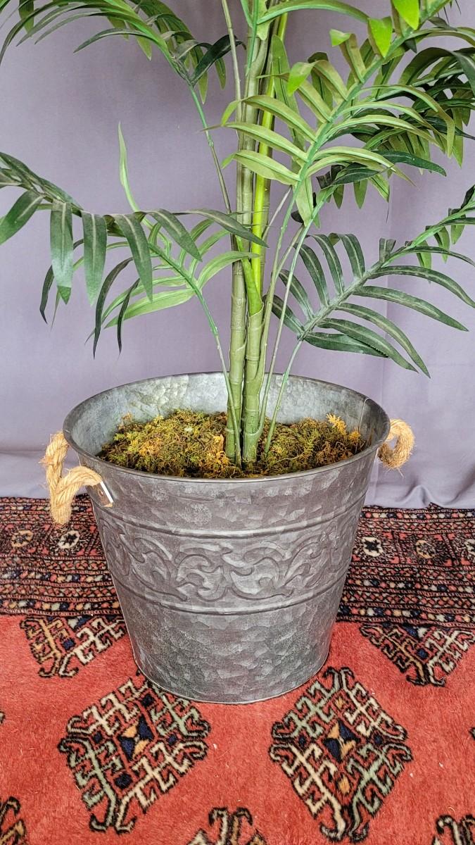 Lot 6: Faux Palm Plant in Metal Container