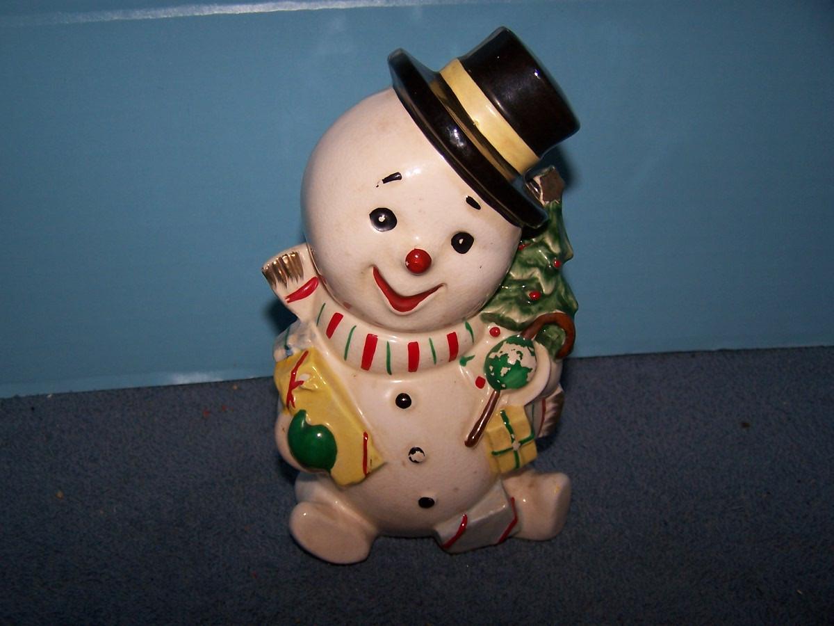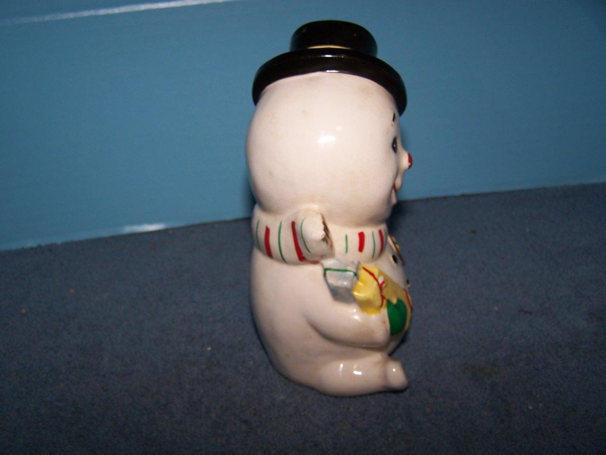 THIS IS AN ADORABLE VINTAGE MCM SNOWMAN BANK!!! 6 1/2'' TALL.. LIGHT WEAR/RUBS..