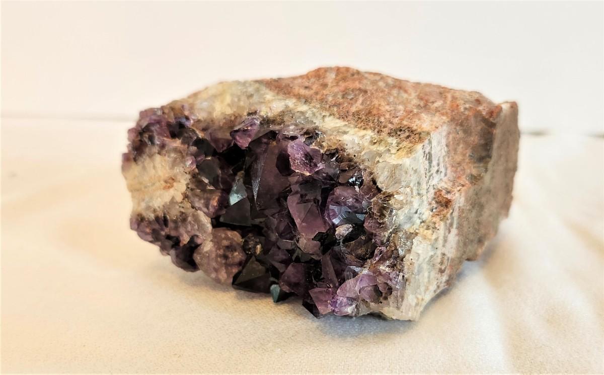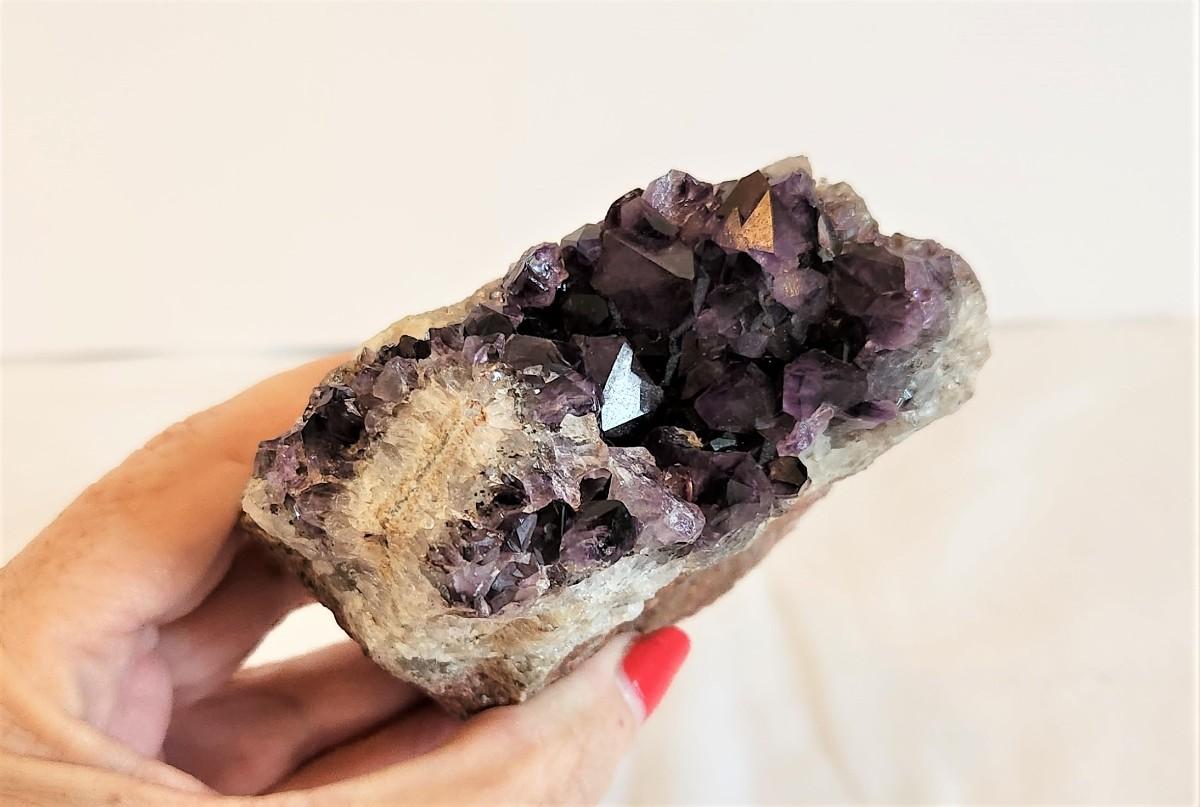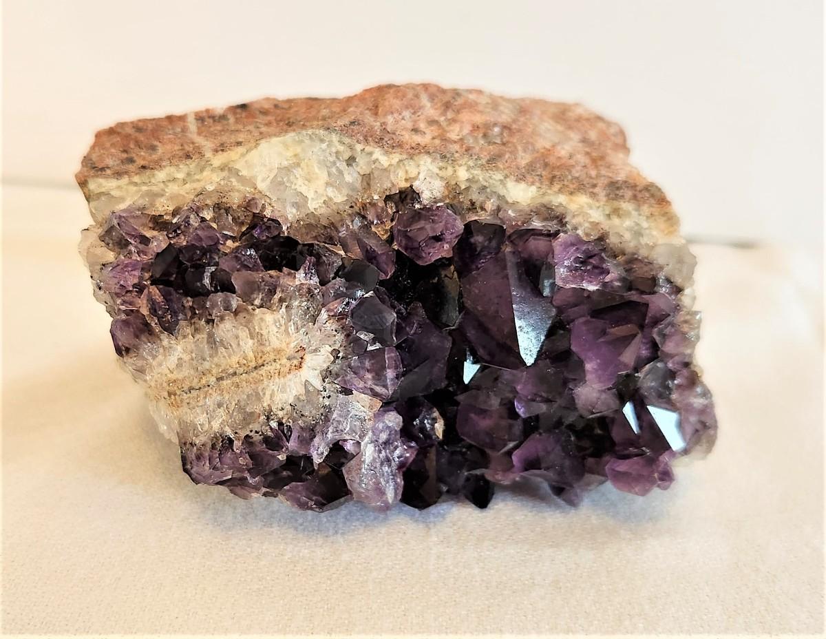 Nice, sparkly amethyst geode - measures about 4" across, 2" tall.