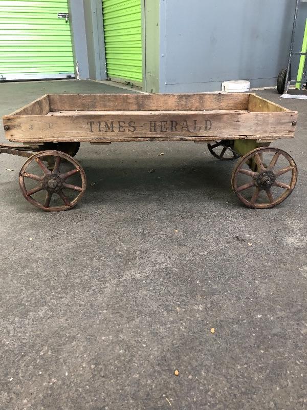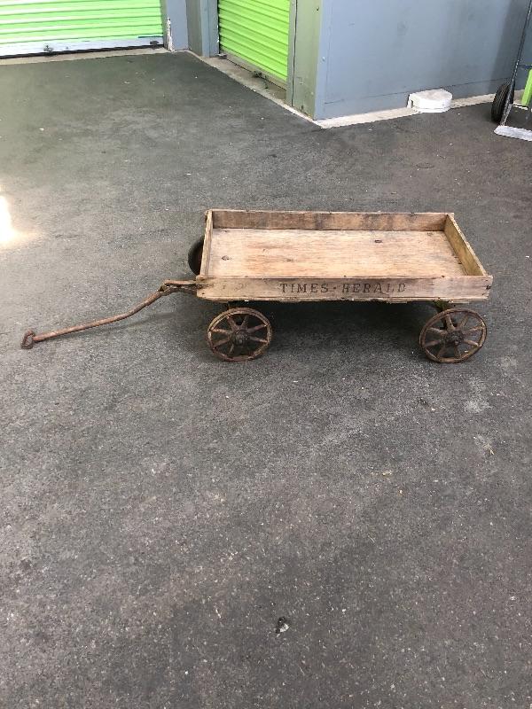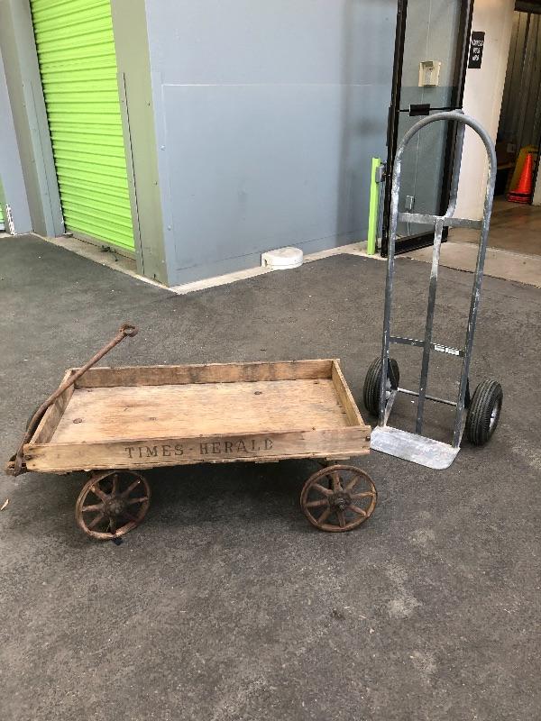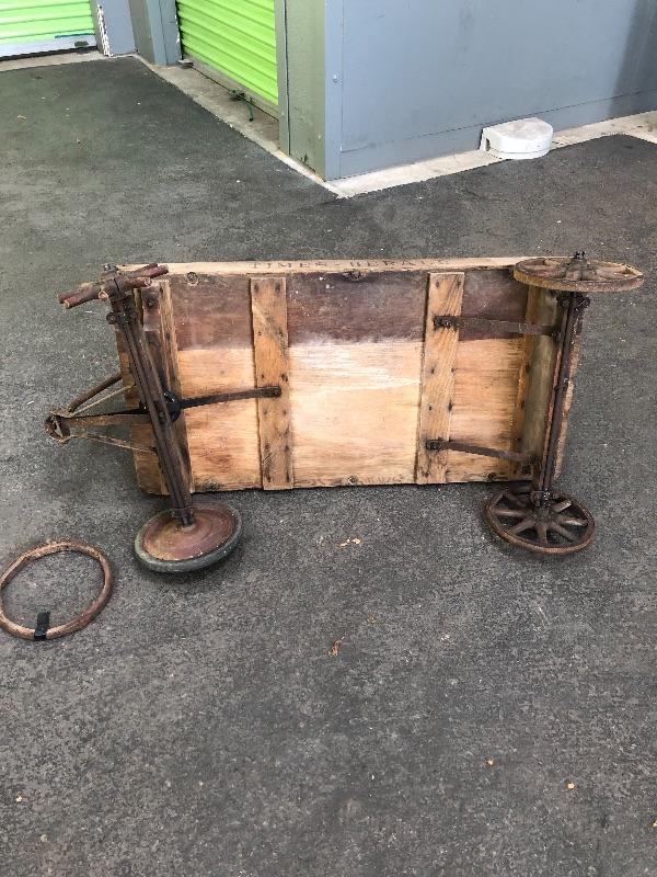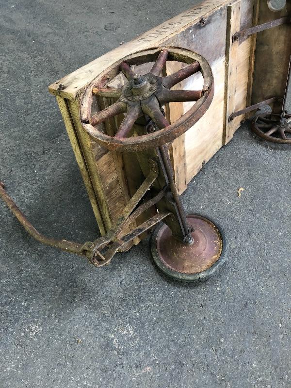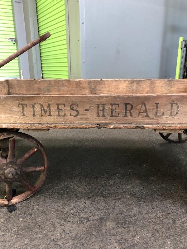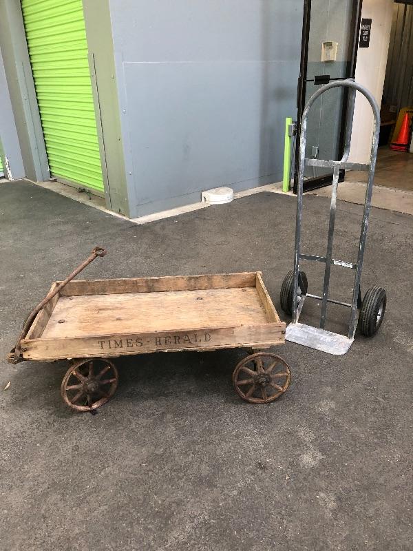 Lot 6 - Antique 1800's Times Herald Newspaper Delivery Wagon  & Hand Truck