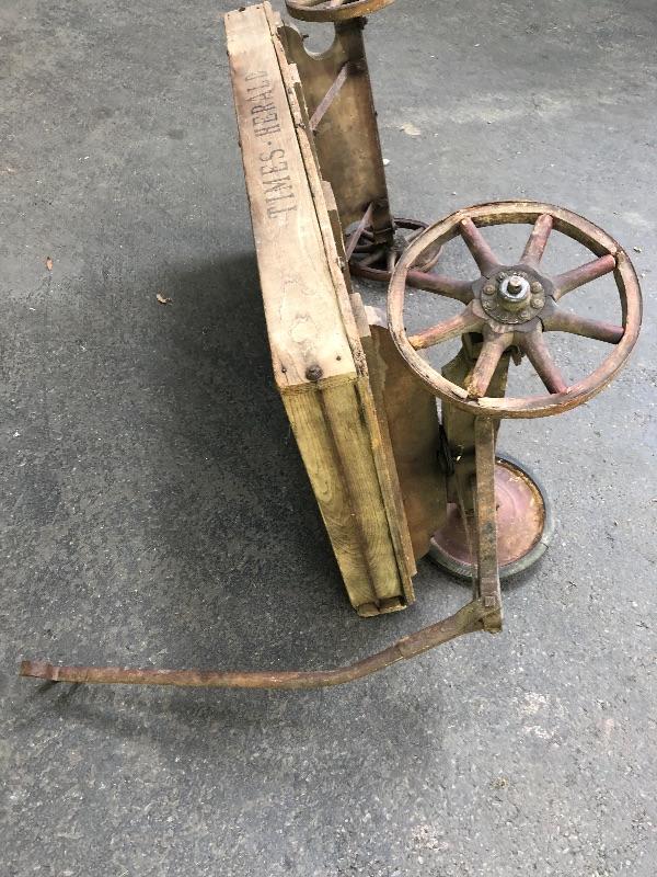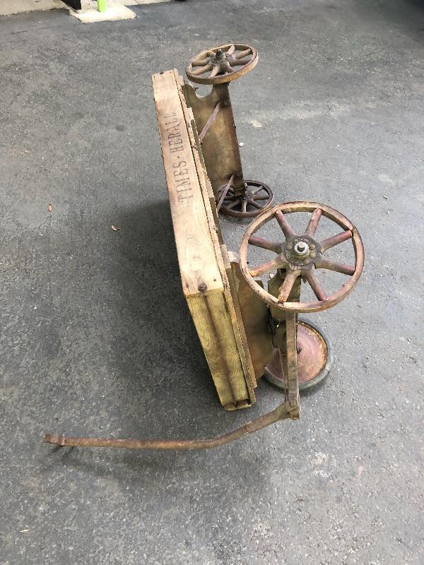 Lot 6 - Antique 1800's Times Herald Newspaper Delivery Wagon & Hand Truck