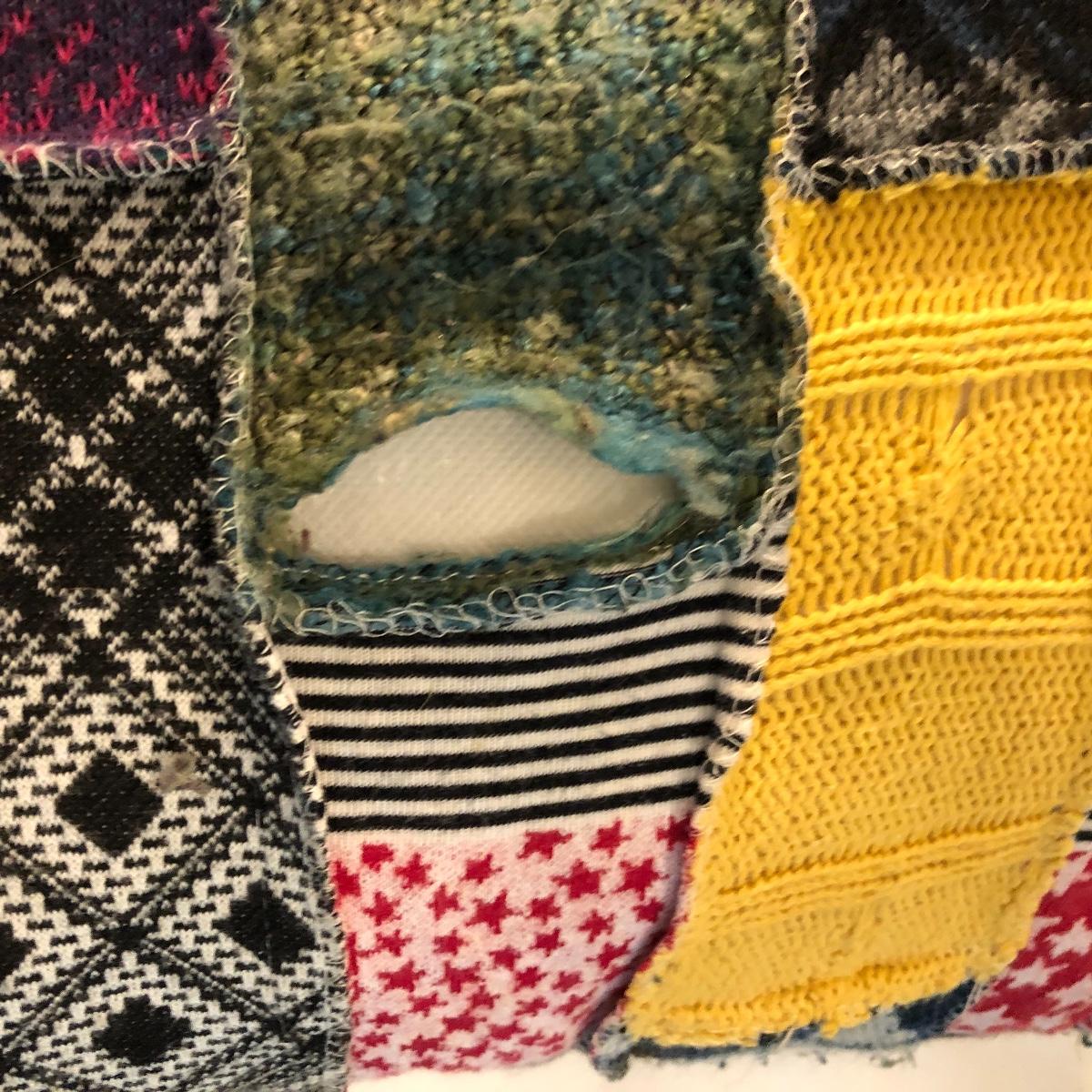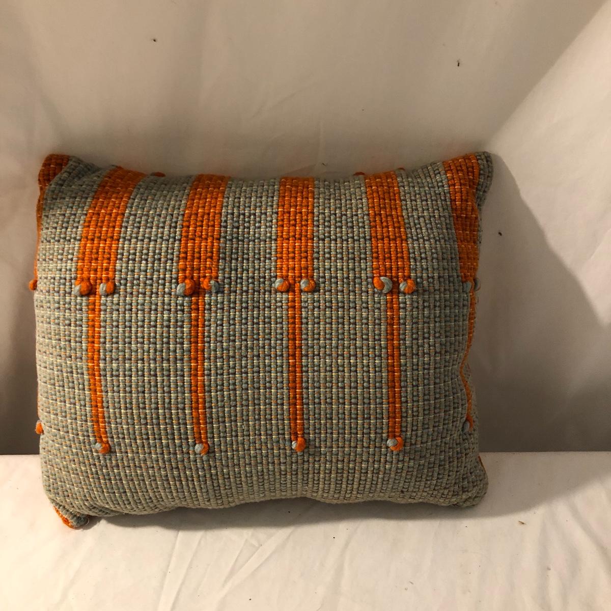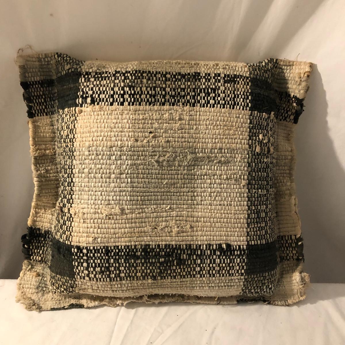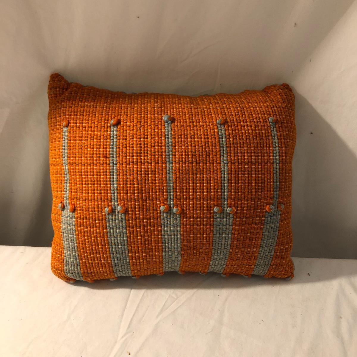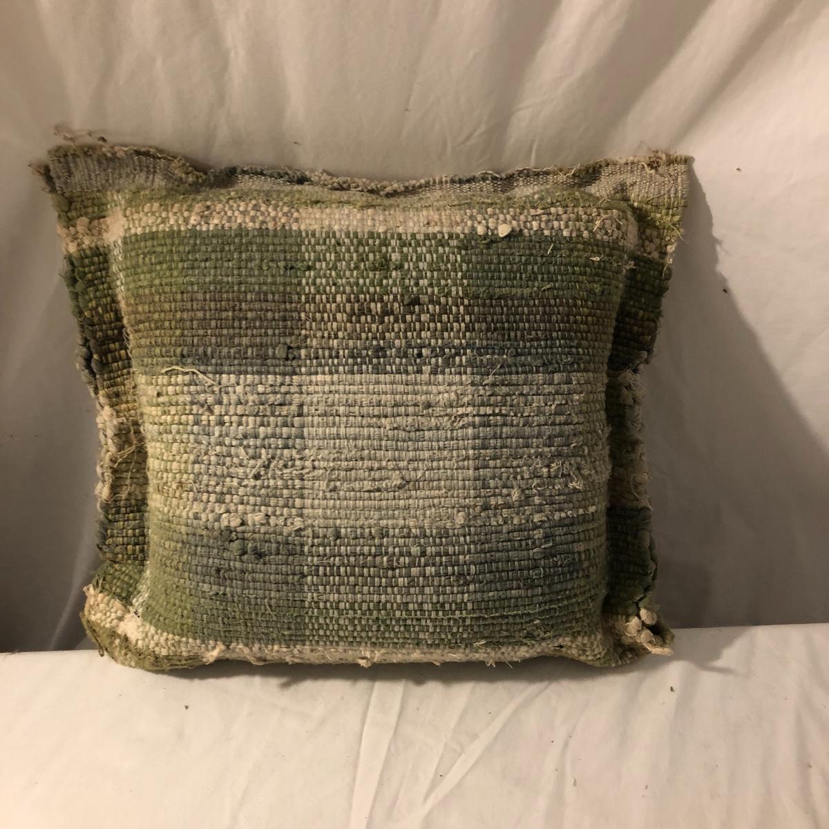 This collection can be used anywhere to add a splash of color. They appear to be handmade. Brown pillow is suede back with fabric front, one is a patchwork style and the other three are woven. Patchwork pillow has a few holes and is a little stained on back, see pictures