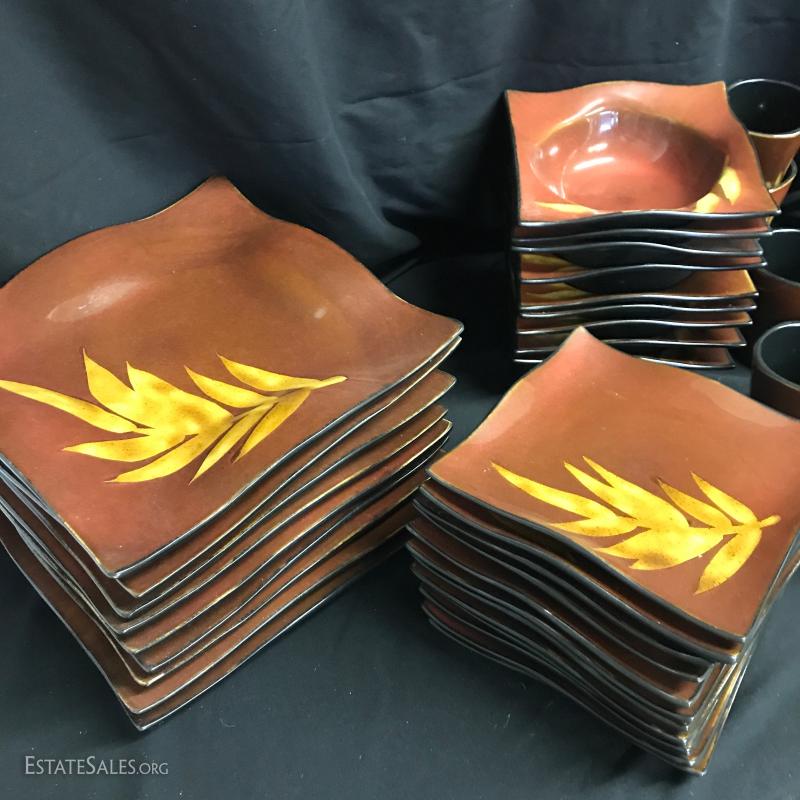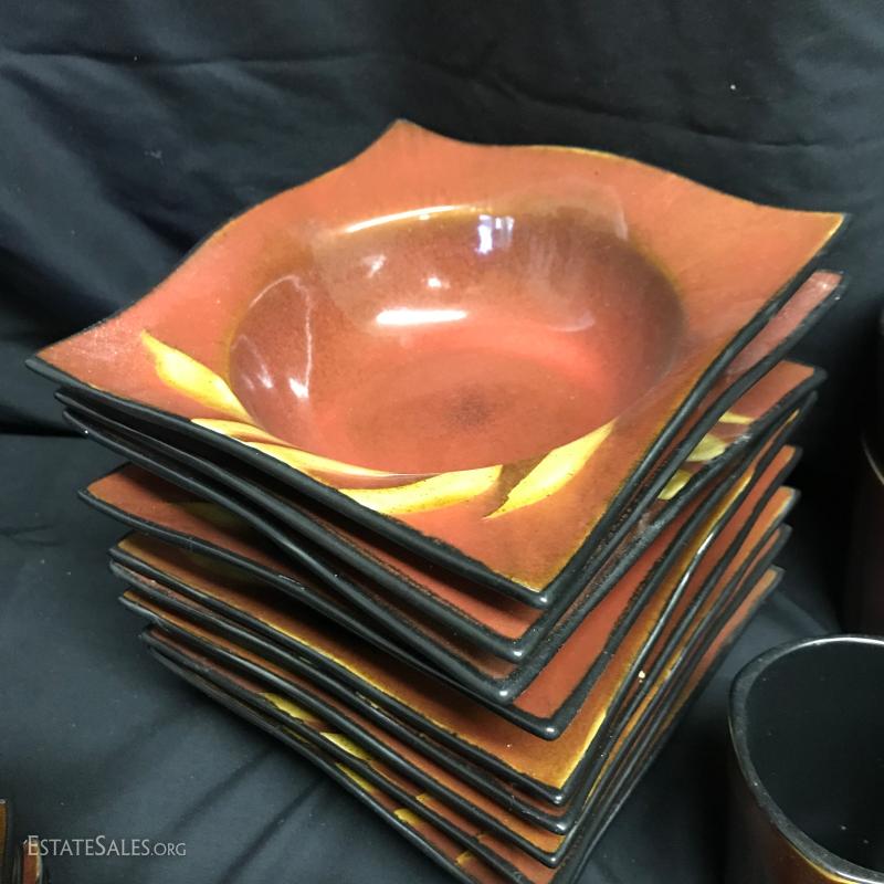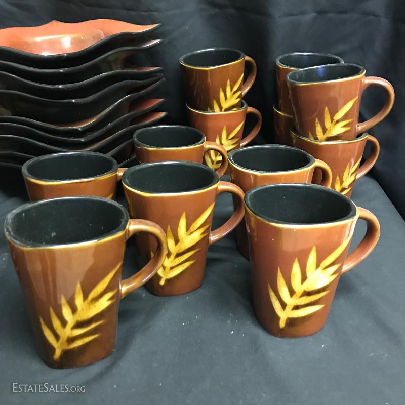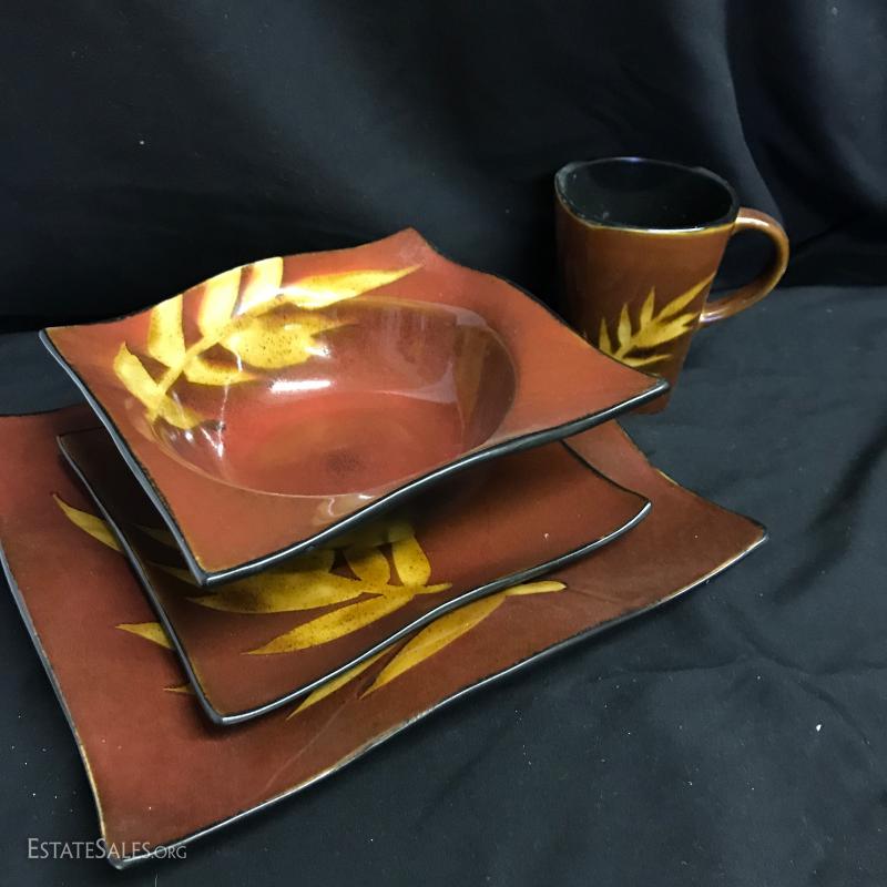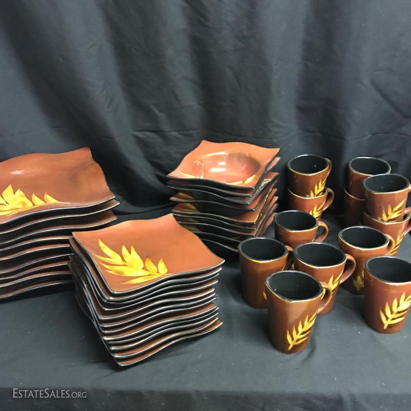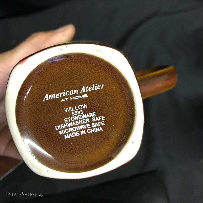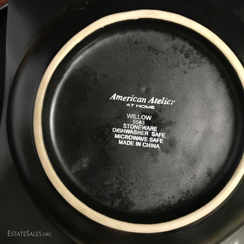 Beautiful stoneware dish set by American Atelier at Home. Willow pattern. Eat in Style!! Includes 9 full place settings (dinner plate, salad plate, bowl and mug). Some extra plates and mugs included. One chip visible in large plate. See pic. Shipping available or local pick up in Waynesville, NC.