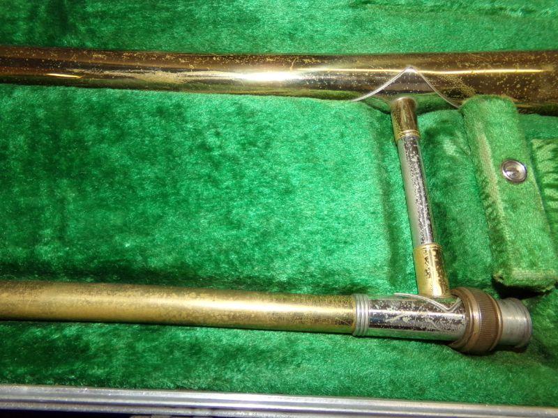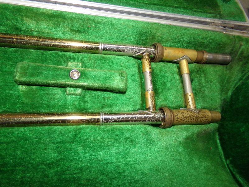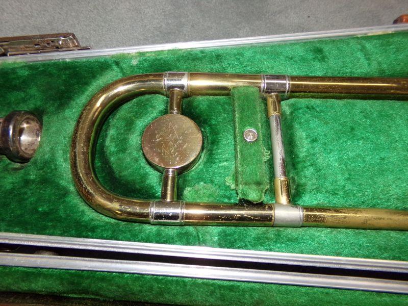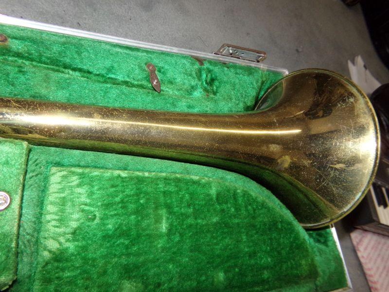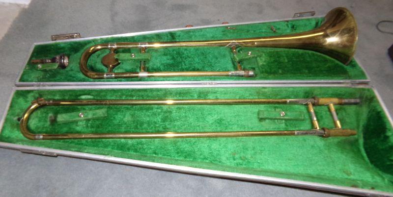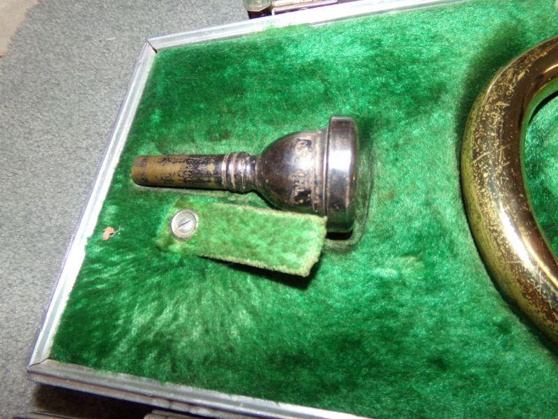 VINTAGE MARCHING BAND TROMBONE WITH MOUTHPIECE IN HARDCASE