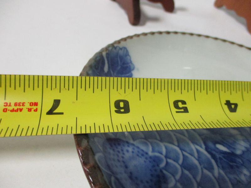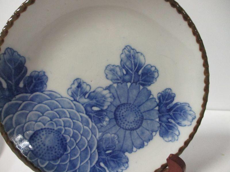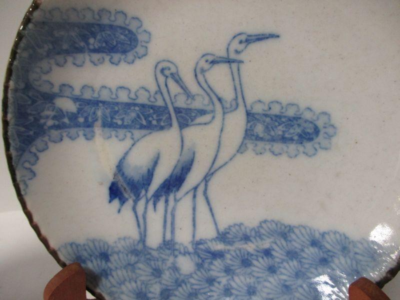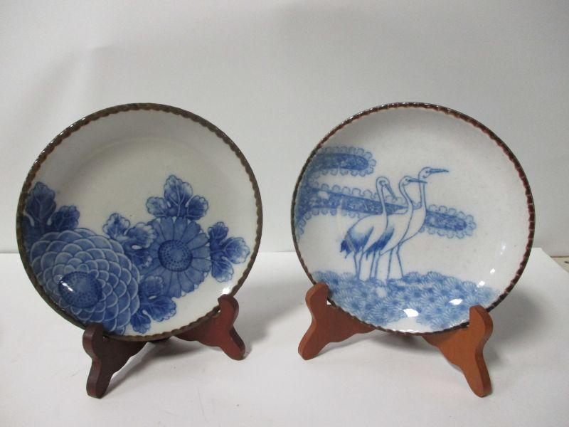 Lot 6 -Vintage Set of Blue & White Porcelain Plates With Scallop Edge Blossom and Herons 7" Each