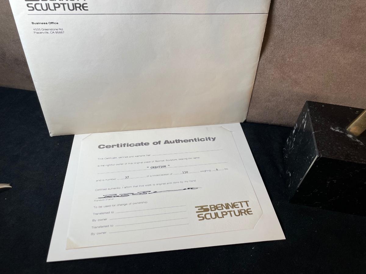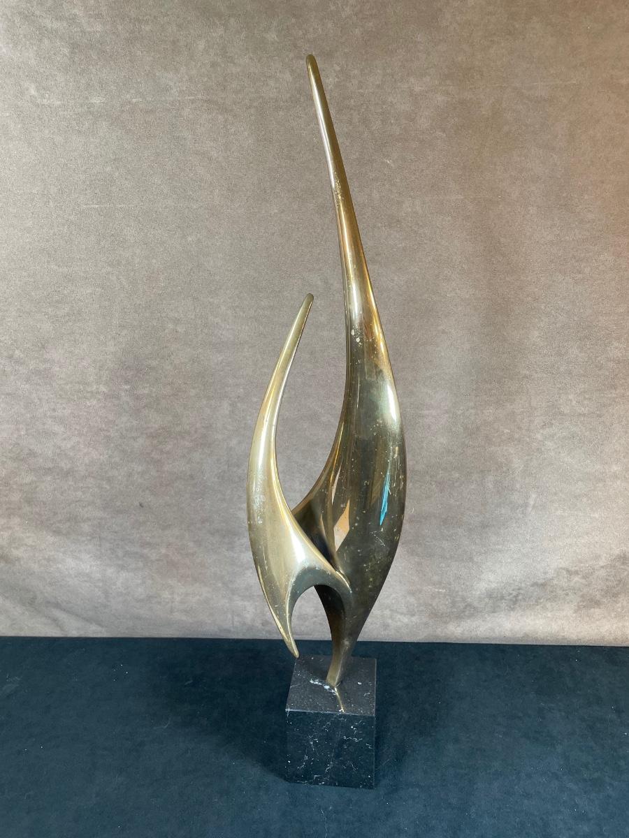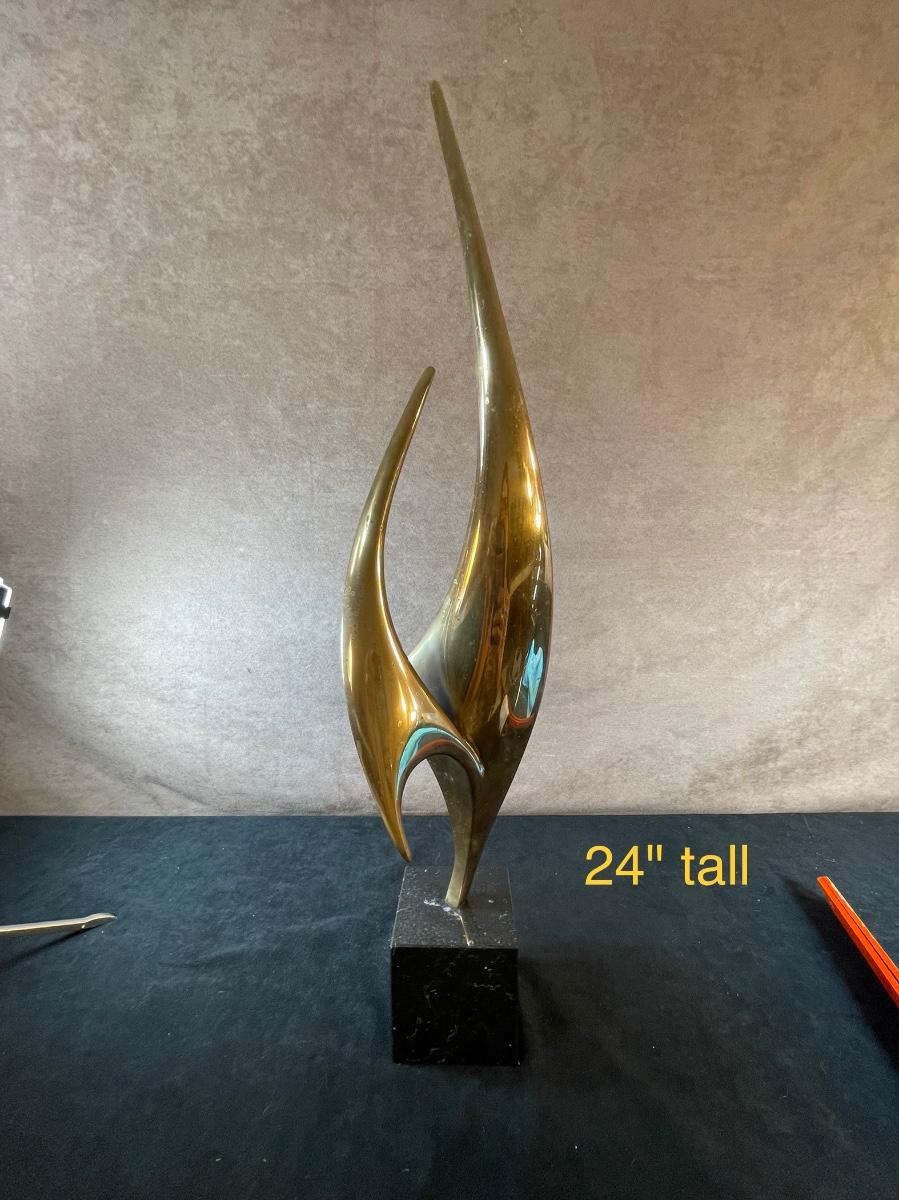 From 1984 #37/150 Solid brass on a black marble base 24" tall . The finish on the brass is spotted from age, so it needs to be polished. Heavy, beautiful piece.