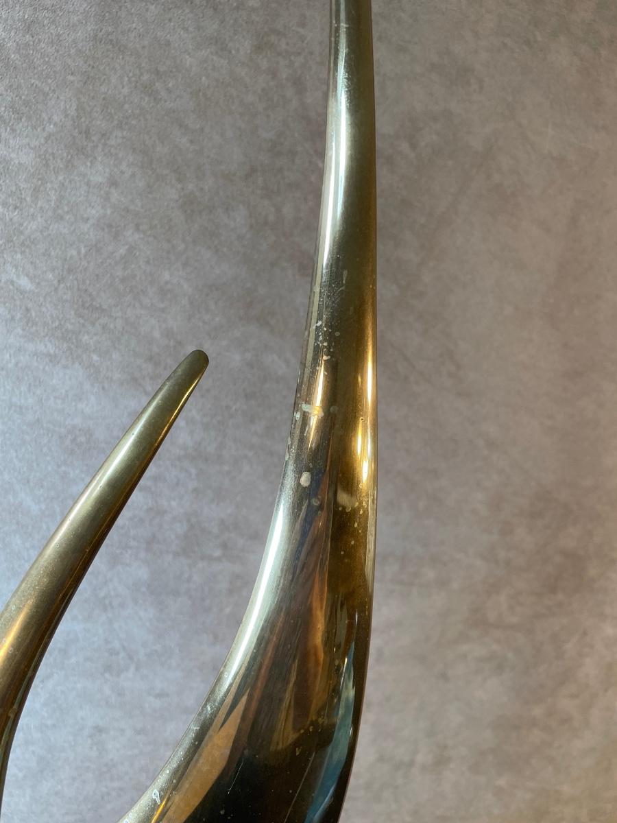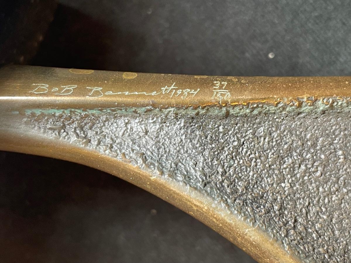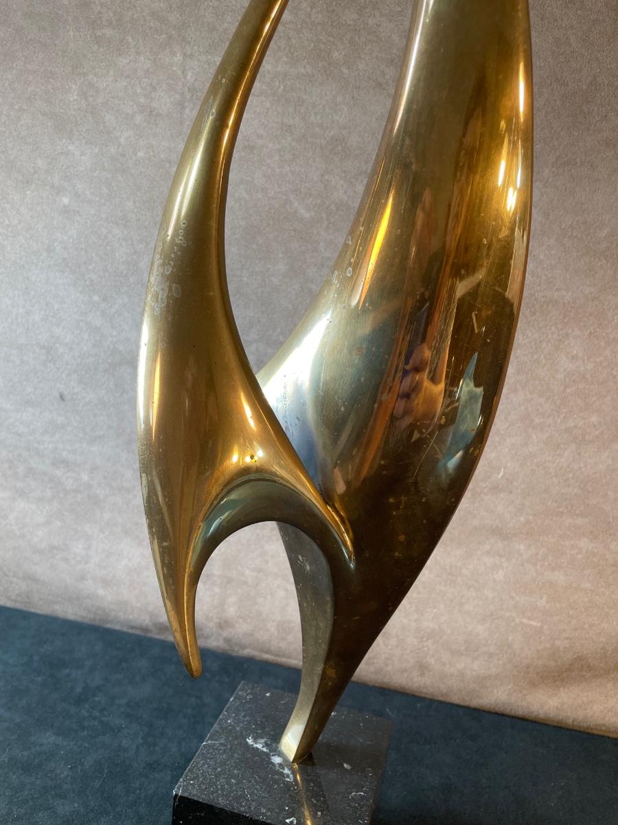 From 1984 #37/150 Solid brass on a black marble base 24" tall . The finish on the brass is spotted from age, so it needs to be polished. Heavy, beautiful piece.