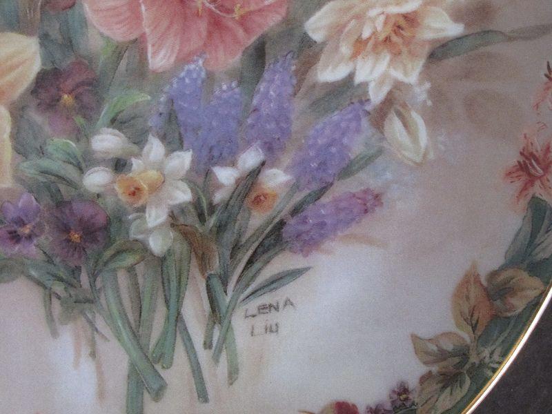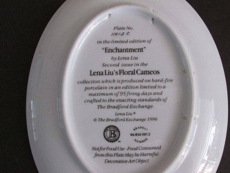 Limited Edition Decorative plate, "Enchantment" by Lena Liu. Produced for Bradford Exchange. Second issue in the Lena Liu's Floral Cameos collection. No chips or cracks. Plate display holder not included.