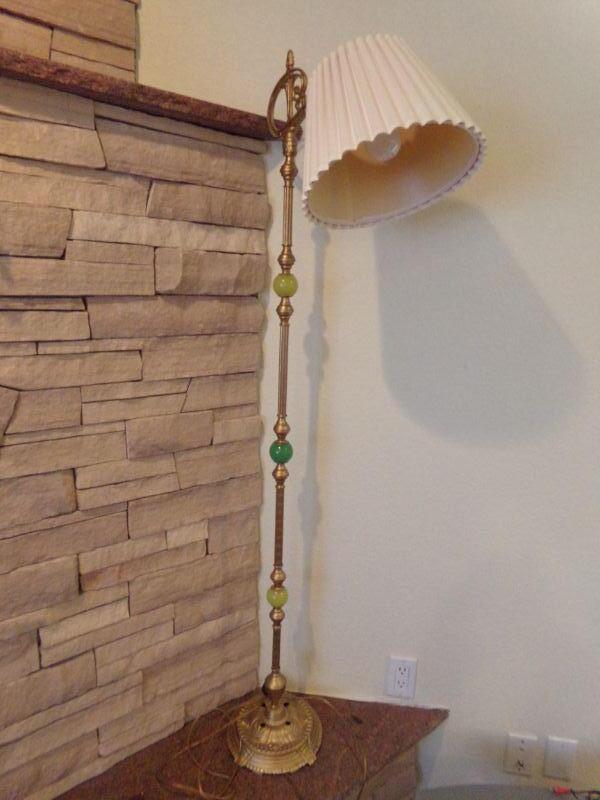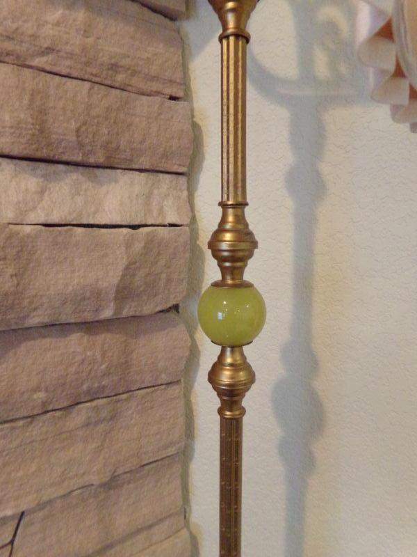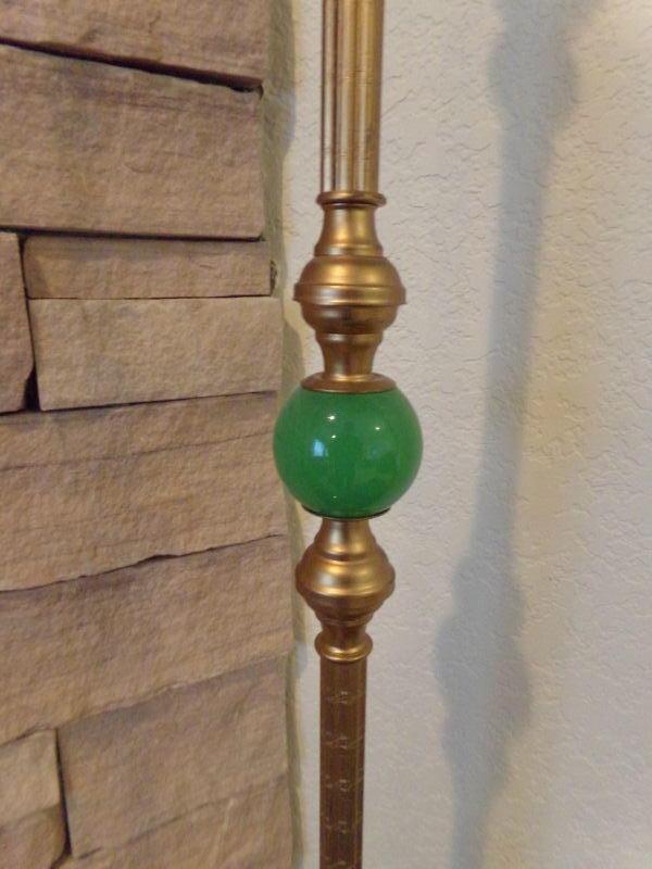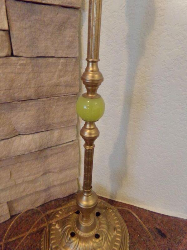 BEAUTIFUL BRASS FLOOR LAMP WITH GREEN & LIME MARBLE ACCENTS INCLUDES LAMP SHADE