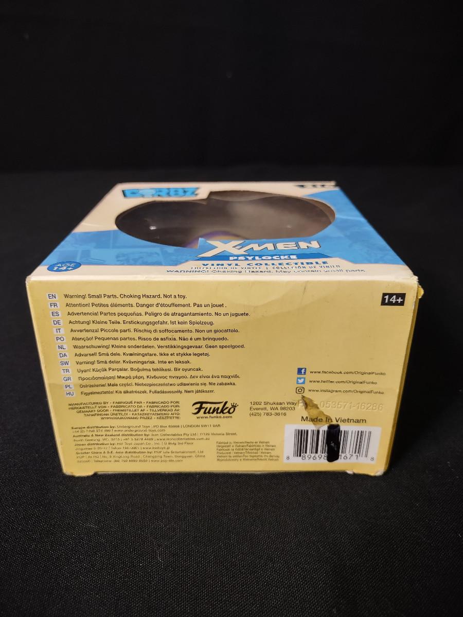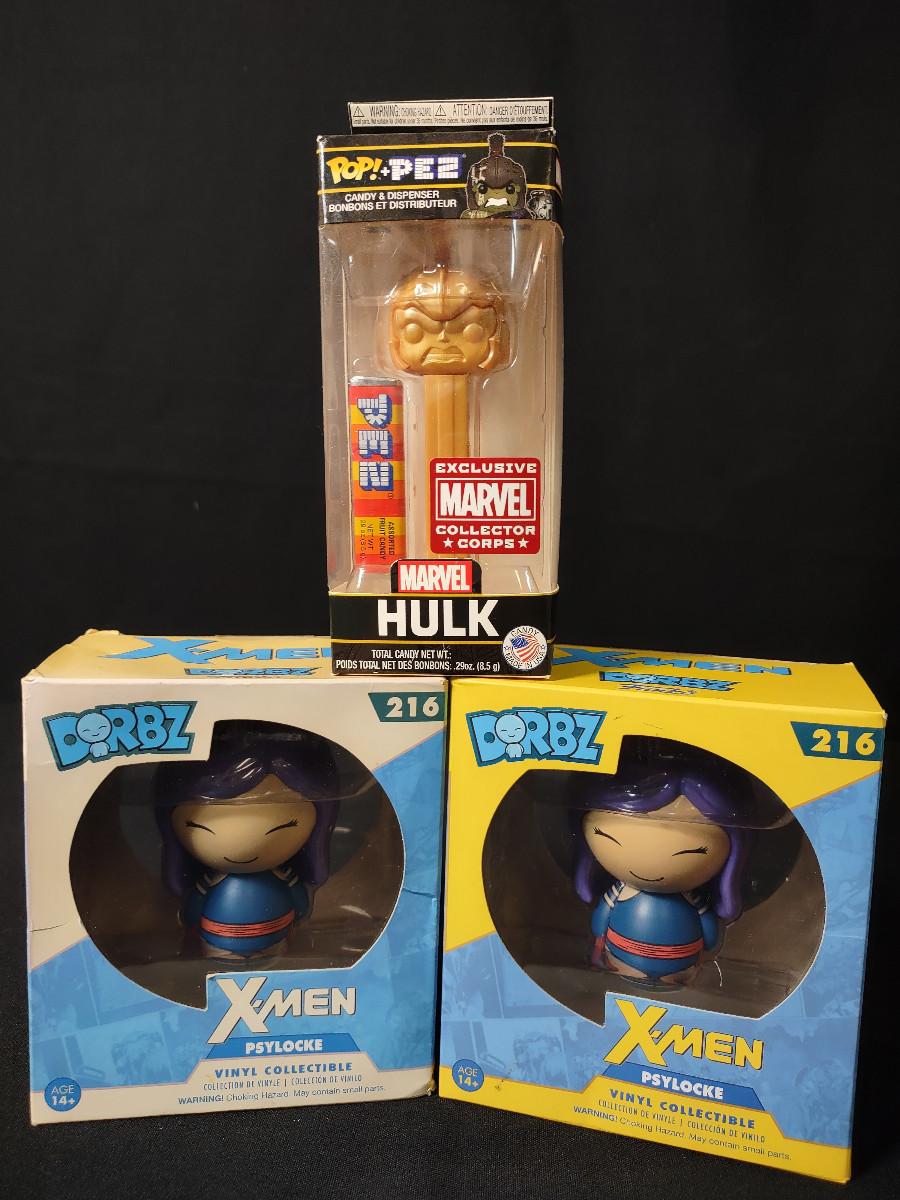 2 New In Box FUNKO DORBZ #216 - X-MEN MARVEL - PSYLOCKE. Also Includes 1 Marvell Hulk Pez. Please see all pictures as they are the best representation of the items. The pictures show condition, measurements if taken, and what is included in the lot. Due to the large amount that we photograph and the time frame, we are not always able to take measurements. All items unless noted, are pre-owned and have been used. If you purchased furniture, you must bring help. We do not allow one person to carry large furniture out on their own. Bring help, tools and a truck for the safety of our client’s homes, and your personal safety. Company policy. Thank you.