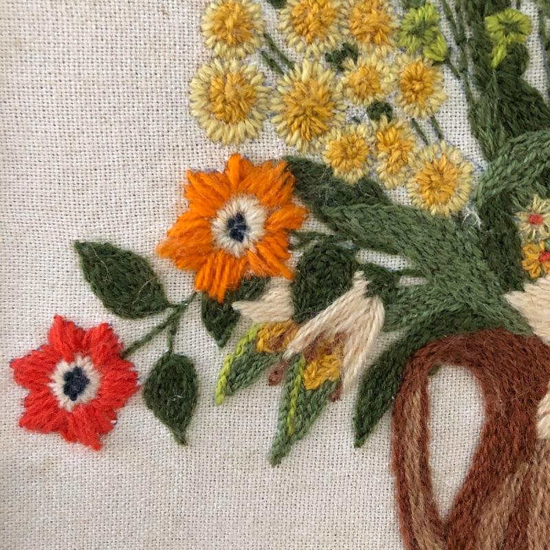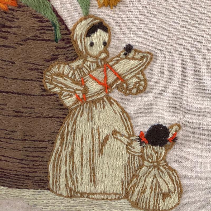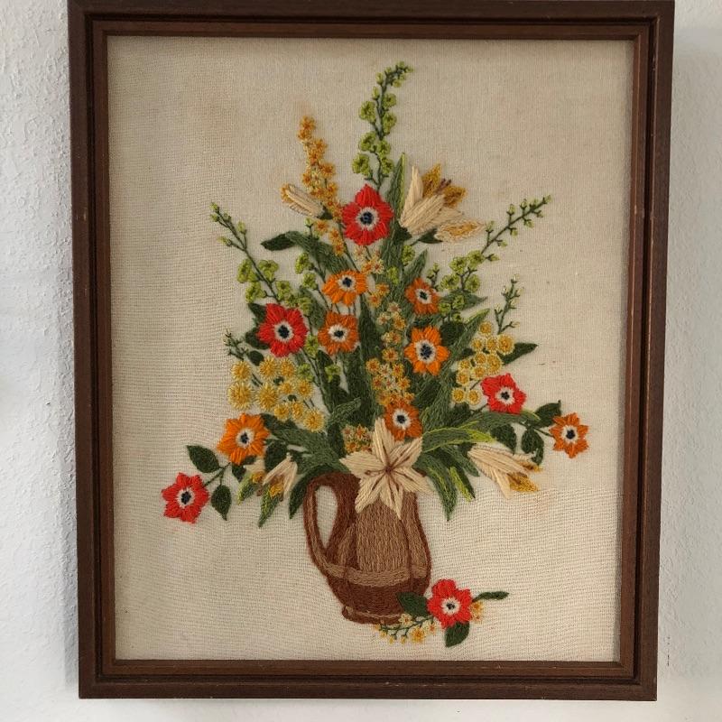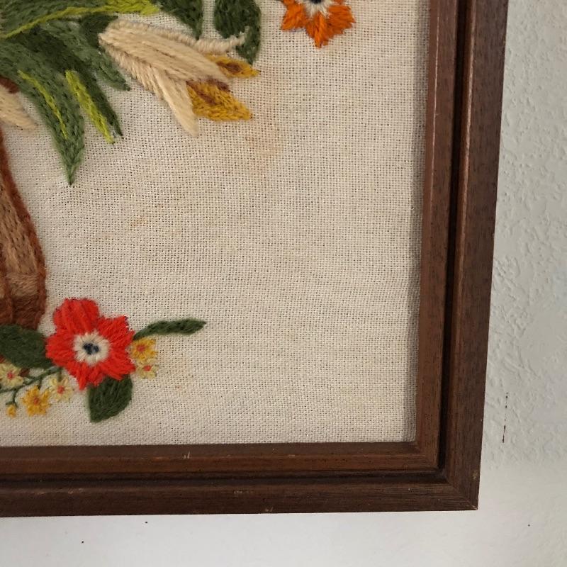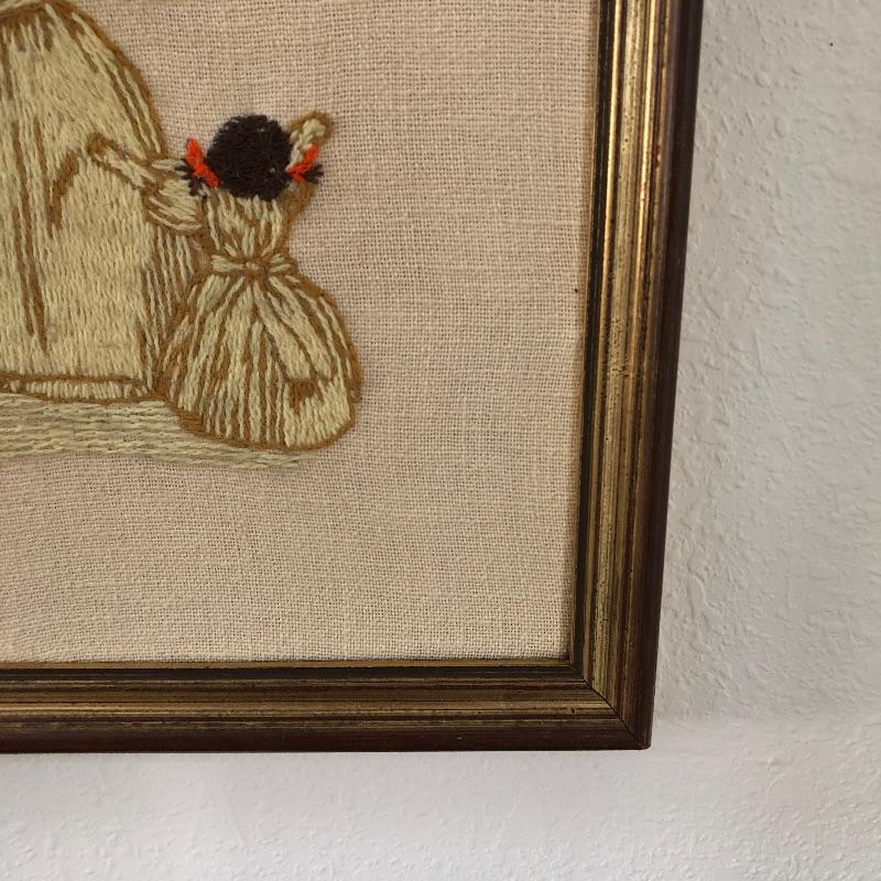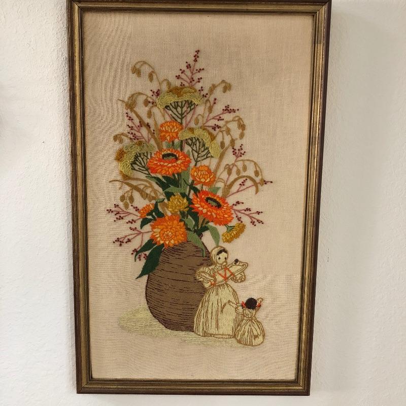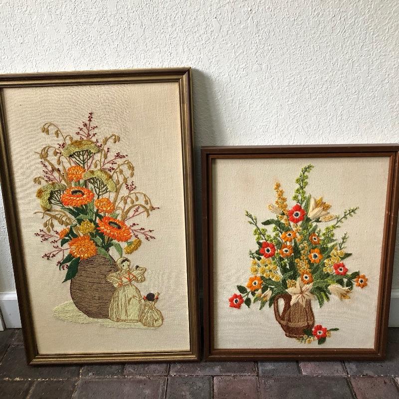 Lovingly hand made pair of framed and ready to hang embroidered artwork. Simplistic yet elegant each piece compliments the other and still stands perfectly on its own. Frames on each piece have minor blemishes and tears in paper on back side. Embroidery is in good condition. Larger piece measures 16” x 1” x 26”. Shipping available but contact UPS for quote prior to bidding (828)252-6930