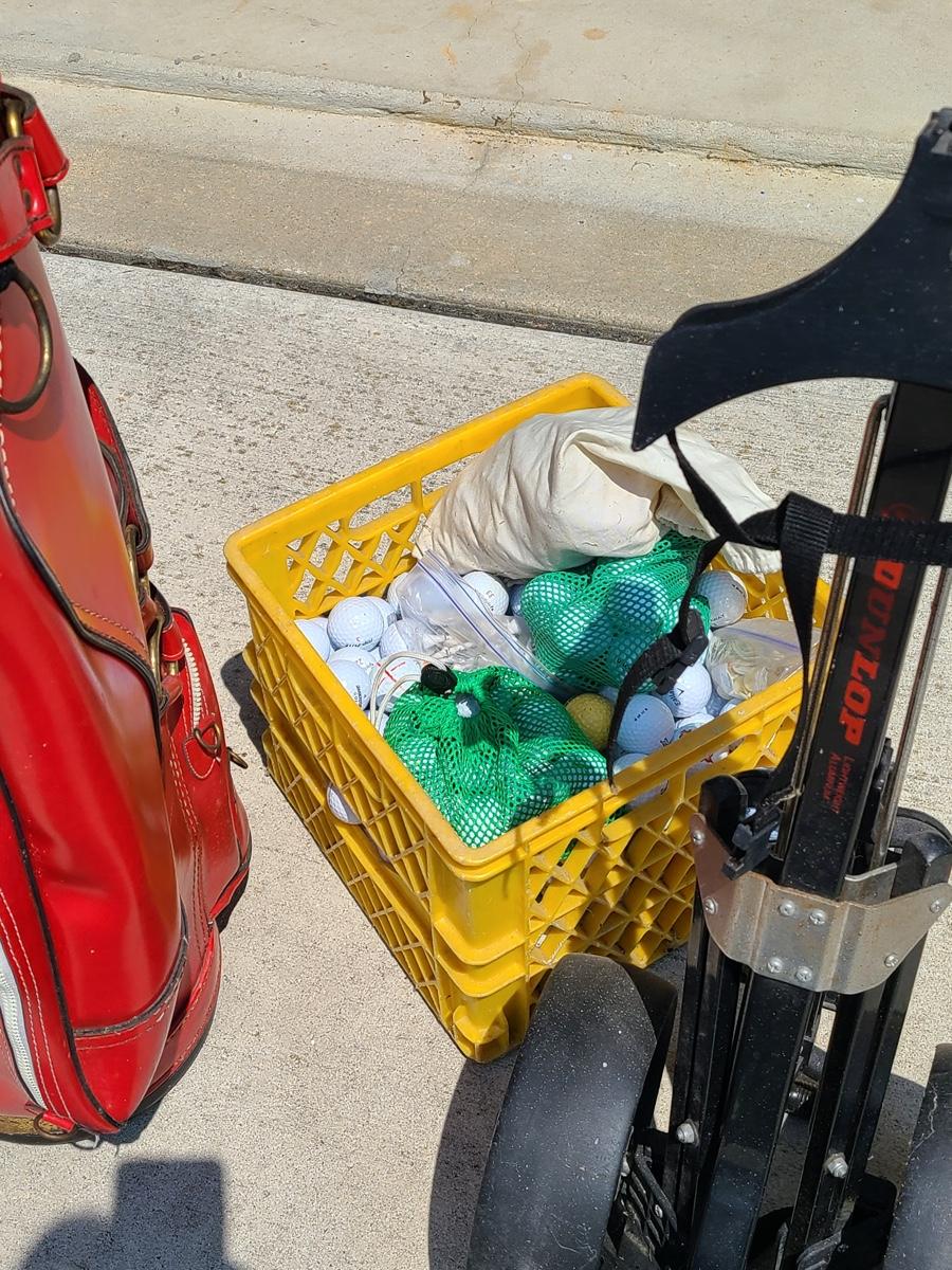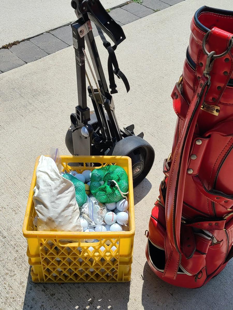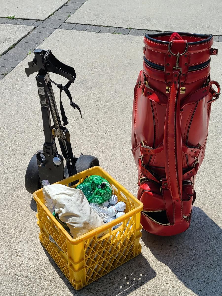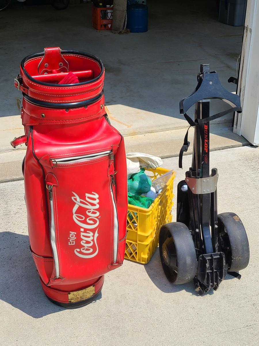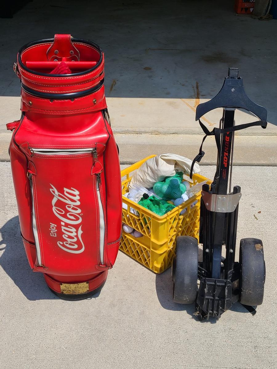 Lot 6 Garage: Vintage Coke Golf Bag, Golf Cart, and Balls
