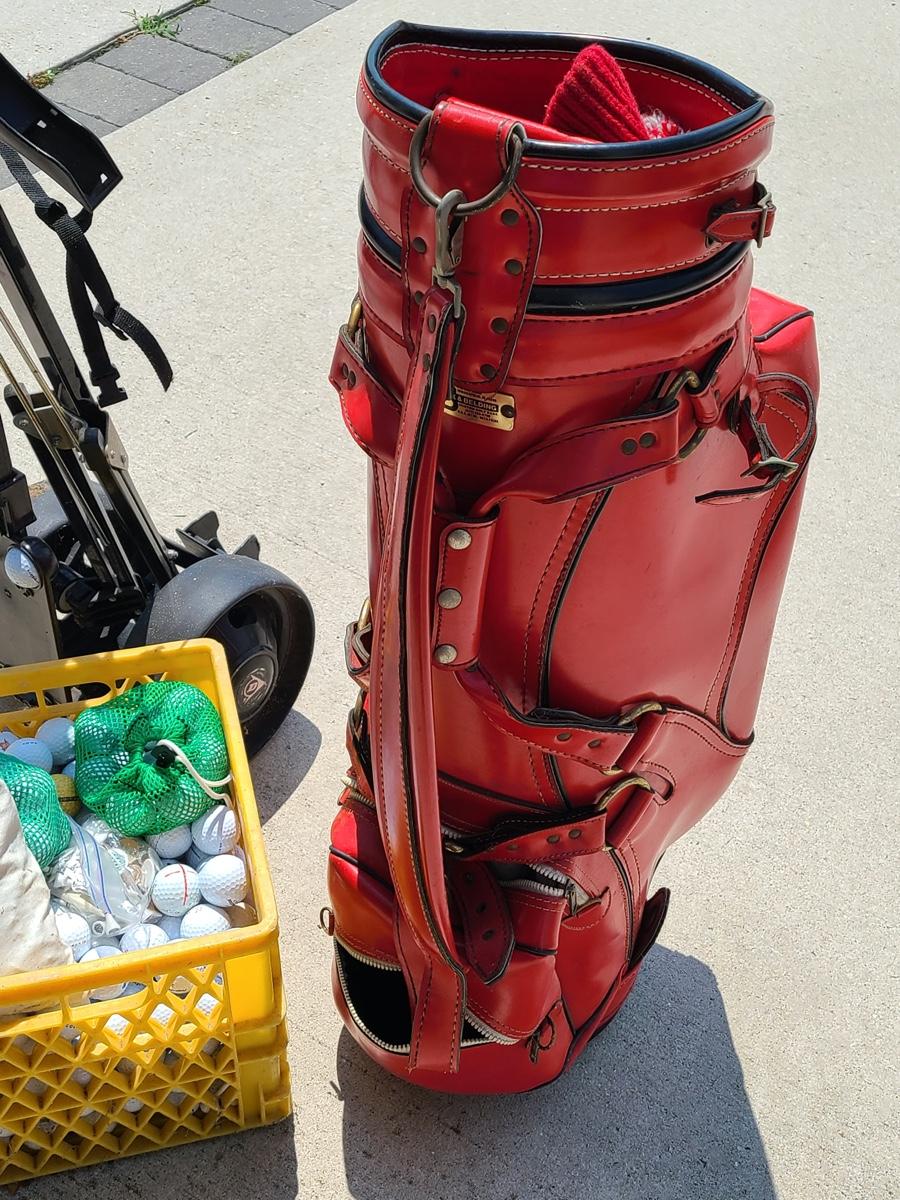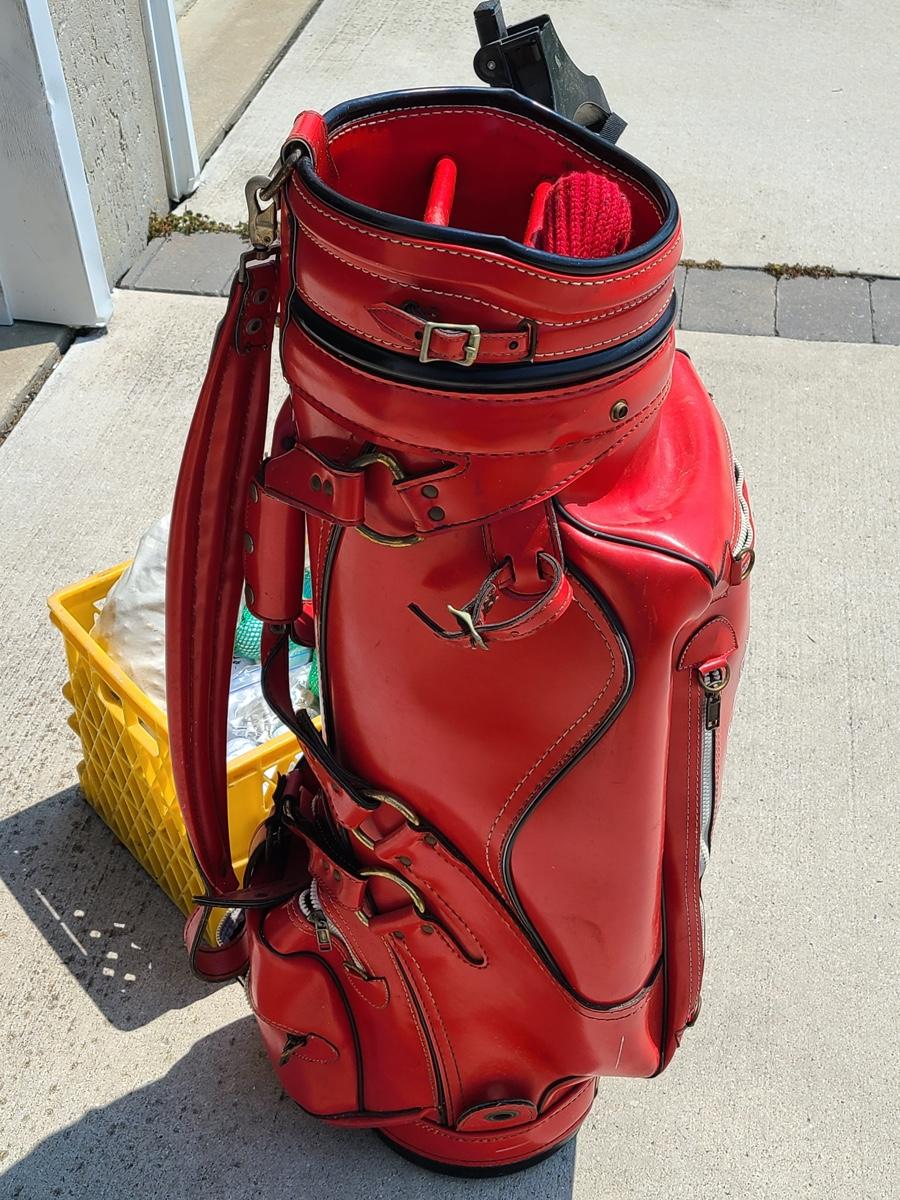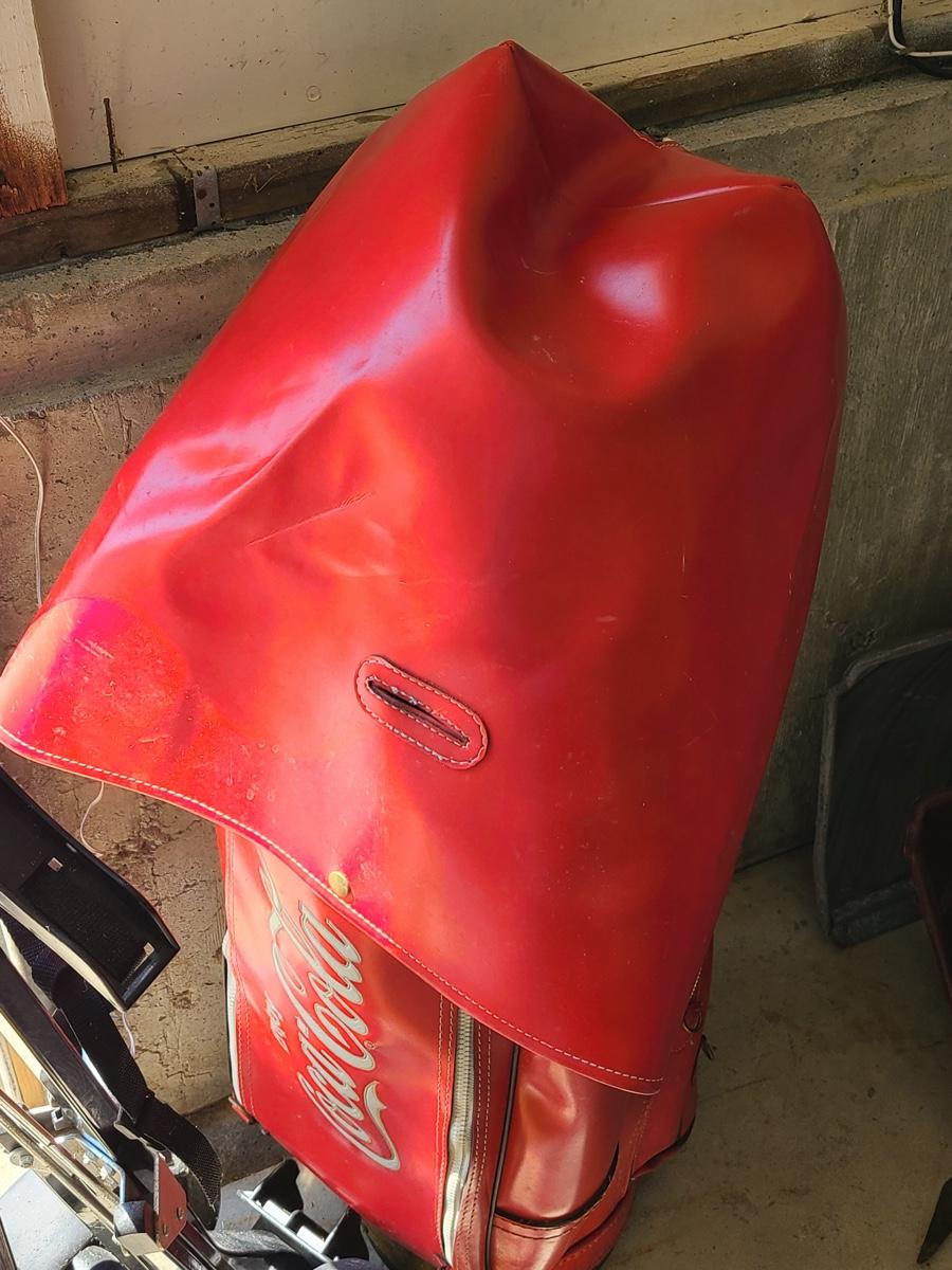 Vintage Coke Golf Bag. Still functional. Not leather. Please see all pictures as they are the best representation of the items in the lot, the condition of the lot, and will show measurements if taken. If purchasing furniture you must be able to move yourself with your own help, and truck. .