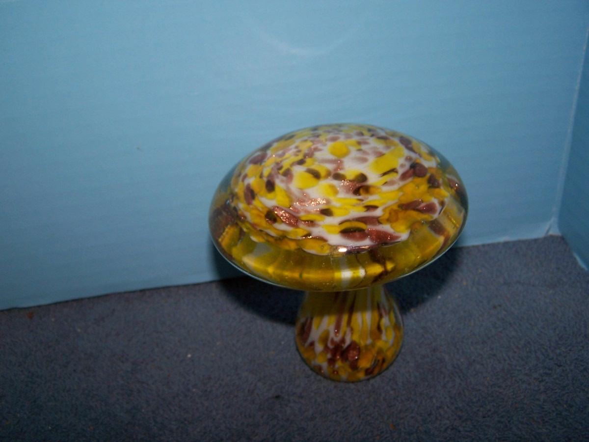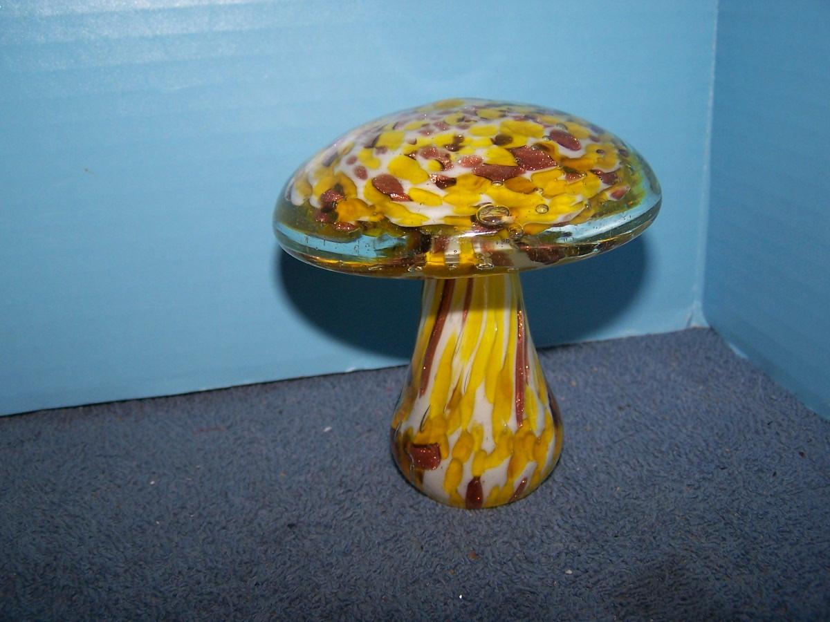 GREAT VINTAGE MCM NOVELTY ART GLASS UNMARKED MUSHROOM IS 4 3/4 INCHES TALL LIGHT WEAR