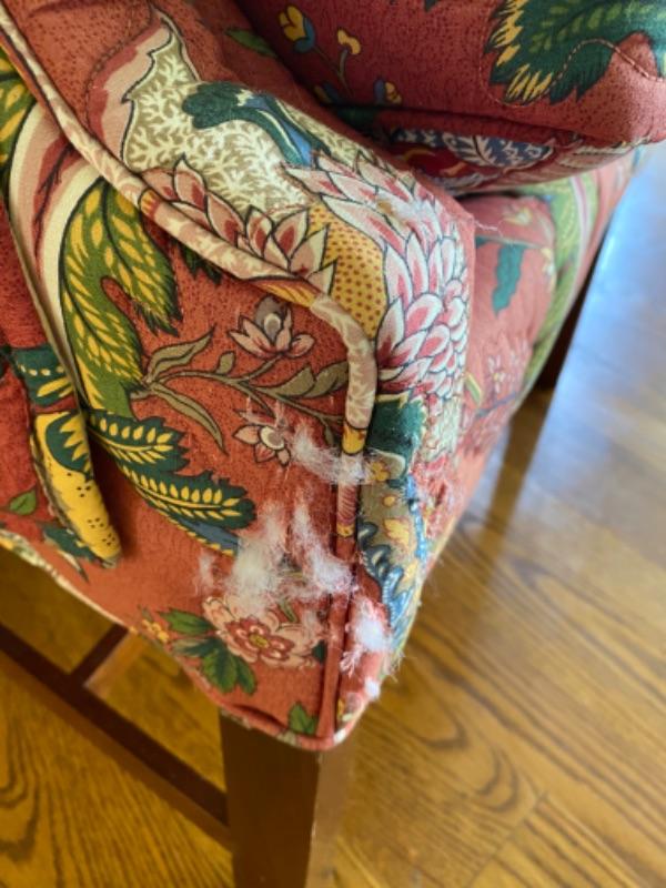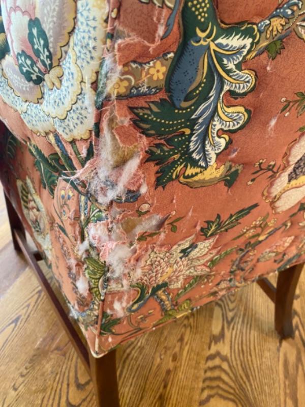 This chair has cat damage otherwise would be great re-upholstered in your fabric.