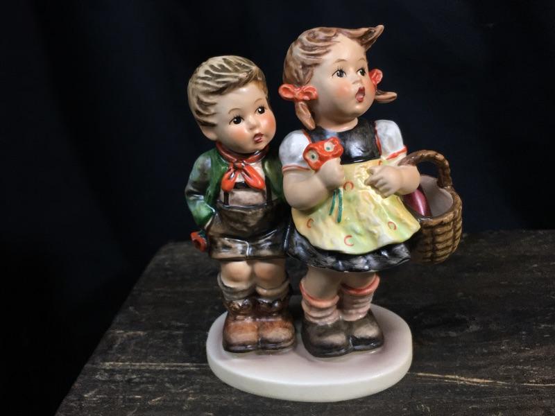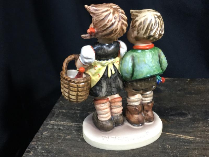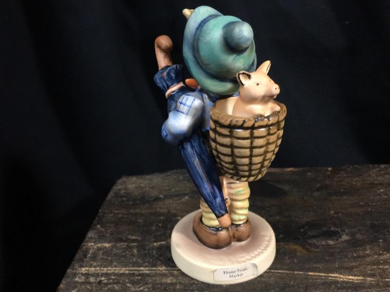 This pairing of gorgeous Hummels contains #198/1 “Home from Market” and #49/0 “To Market”. “Home from Market” is a TMK 5 Hummel and has minimal crazing, most noticeable on its base. “To Market” is also a TMK 5 and is in mint condition.