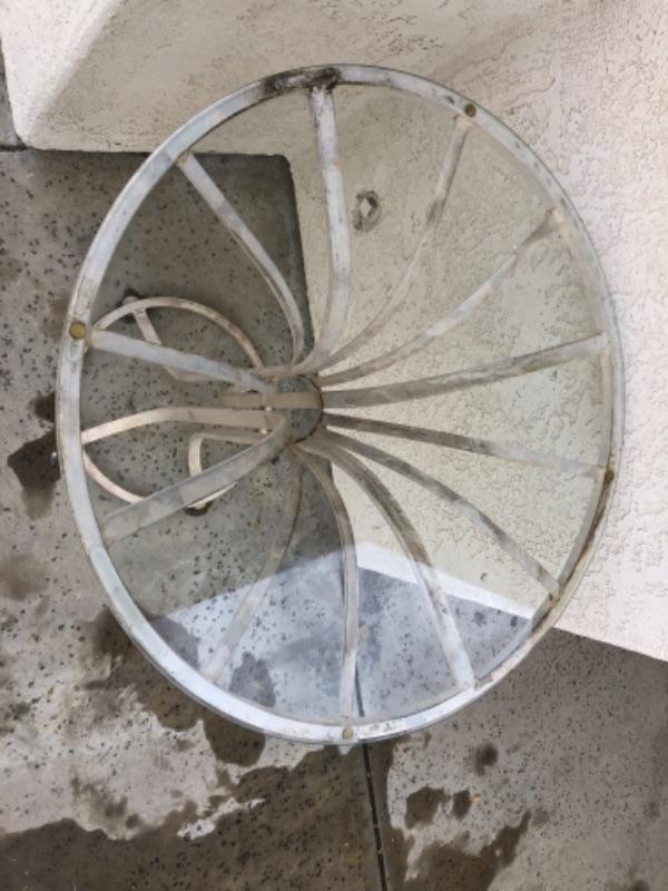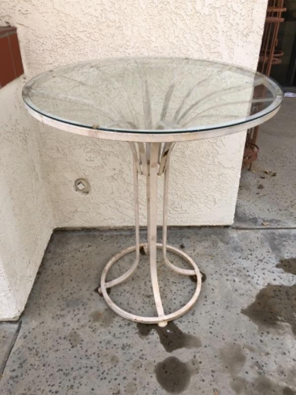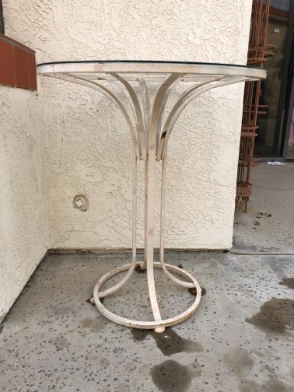 Lot 6. Iron tall outdoor glass-top iron table (36” x 30”)--WAS $35““NOW $26.25