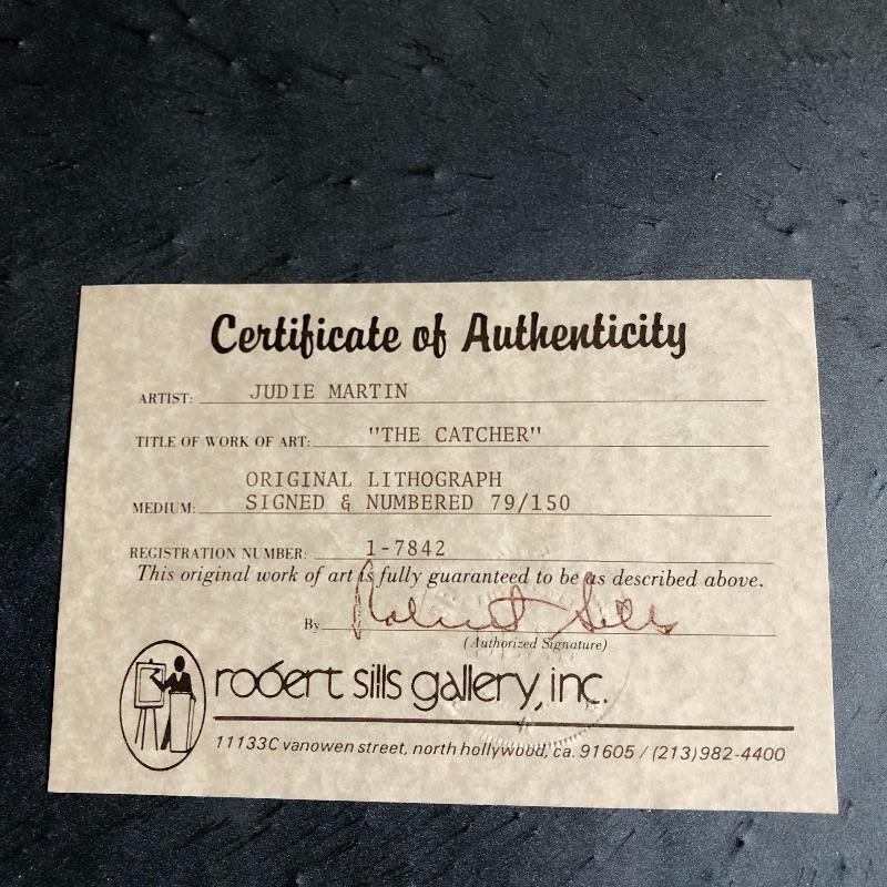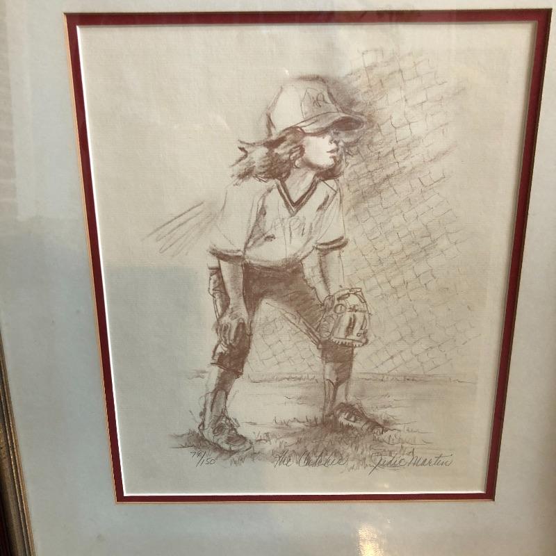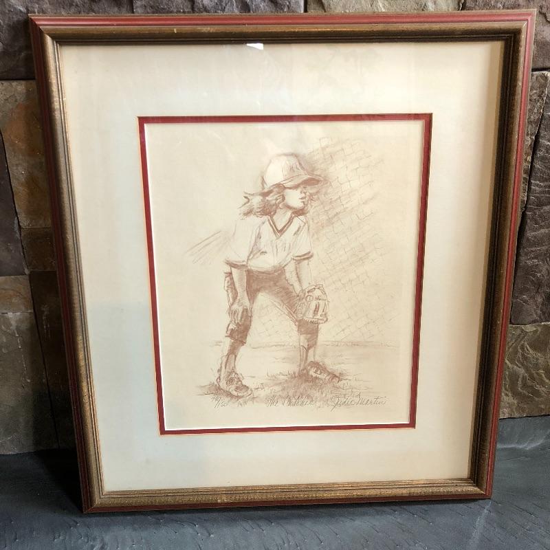 This will be a great gift for the baseball fan in your life, or treat yourself. This Judie Martin lithograph titled “ The Catcher”is framed, matted, pencil signed and numbered with a COA. Frame measures 18.5” x 20.5”.