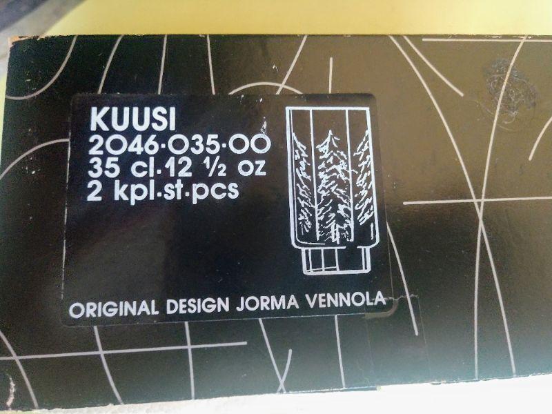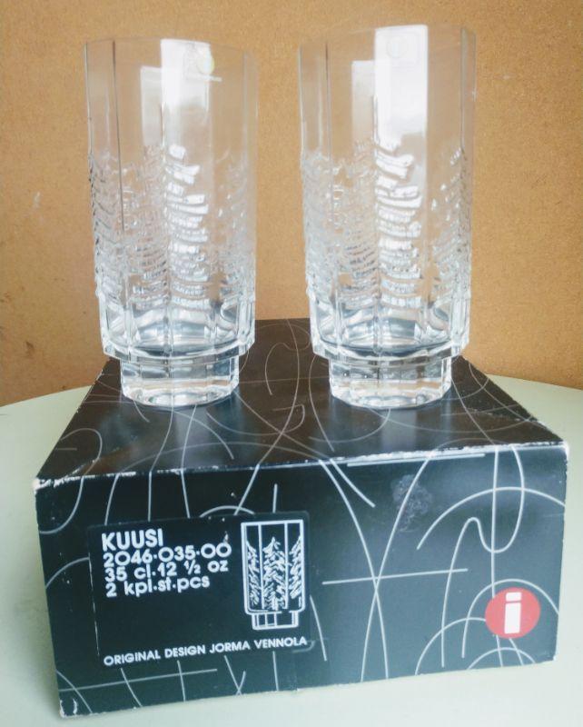 Kuusi -drinking glasses, set of four,, designed by Jorma Vennola, Iittala Finland. Vintage from 80's. All glasses are in good vintage condition, no chips or cracks.