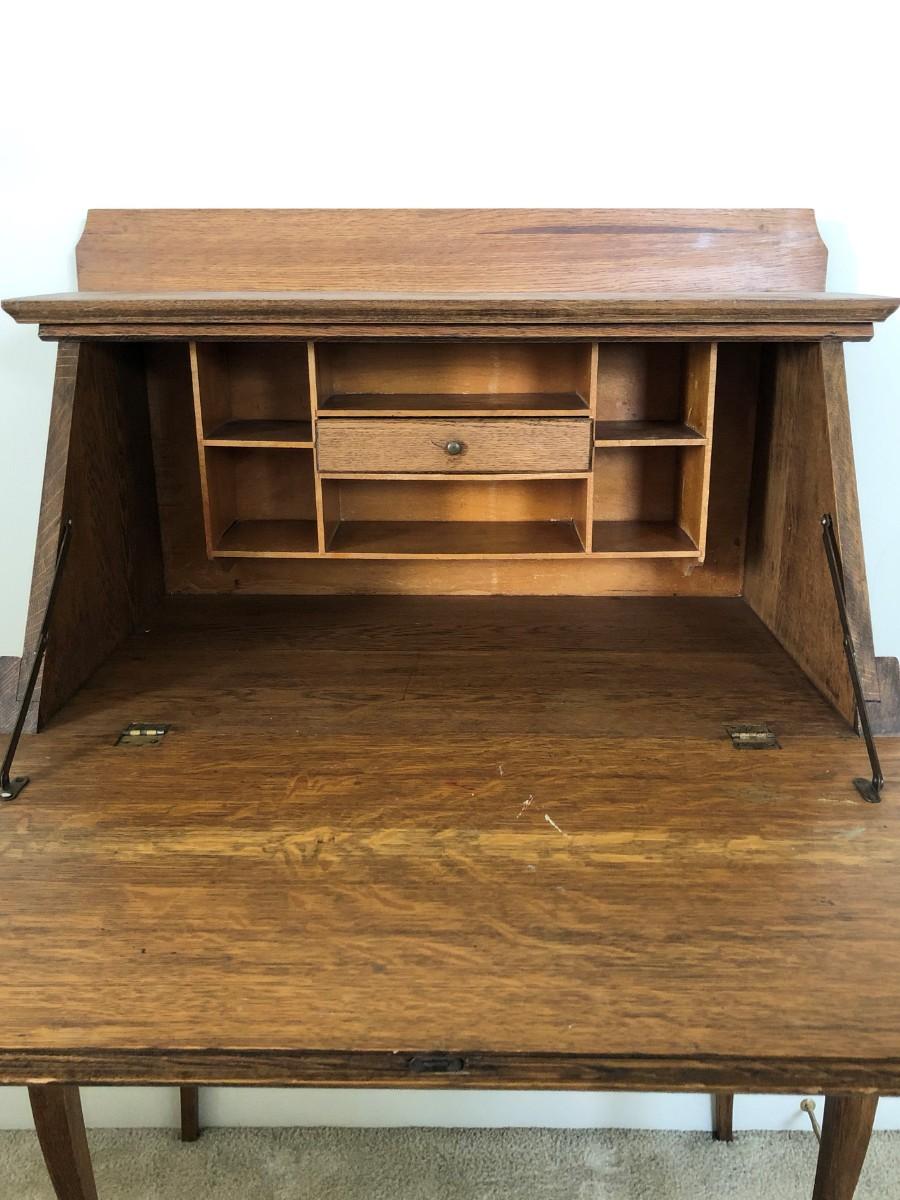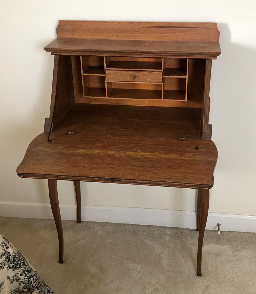 The Larkin Company was founded in Buffalo, N.Y., by John D. Larkin in 1875 and this desk was one that you could get for free with a specified amount of soap purchased. For a little more history, check out this website: https://www.eastbaytimes.com/2005/08/05/antique-larkin-desk-has-lengthy-history-but-low-value/ This desk has been with the consignor since the 1950s-1960s and is in excellent condition. It is 44.25" tall, 29.5" wide, and 15.5" deep.