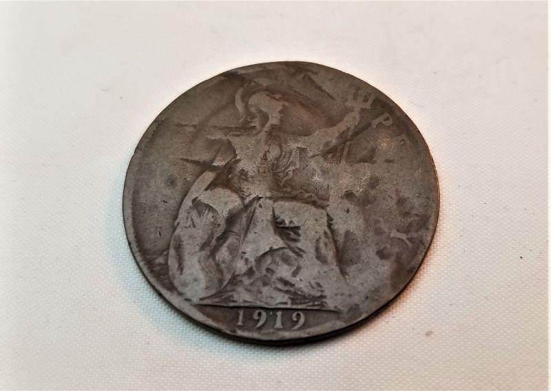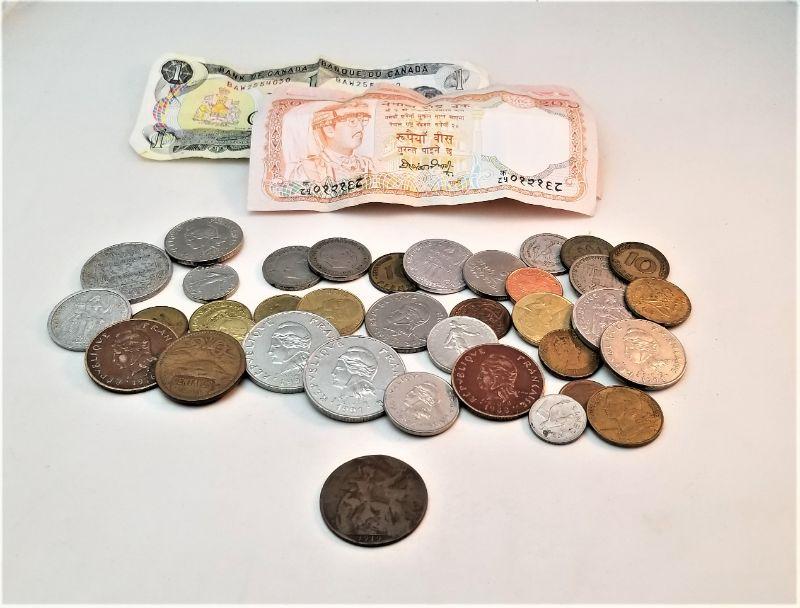 Nice of lot obsolete foreign currency here, including a 1919 English Penny featuring George V (very worn). 36 coins in all, plus a couple of bills. You get all you see here.
