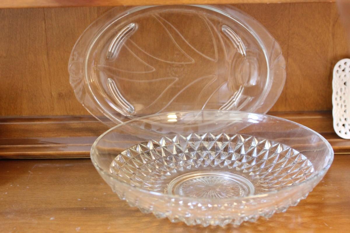 Lot 6 Lrg Glass Serving Platters (Leaf Pattern Pyrex)