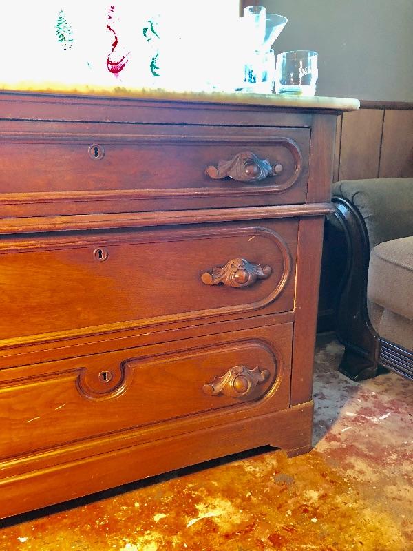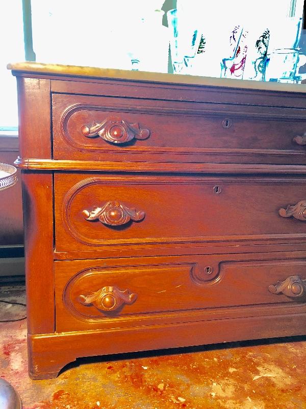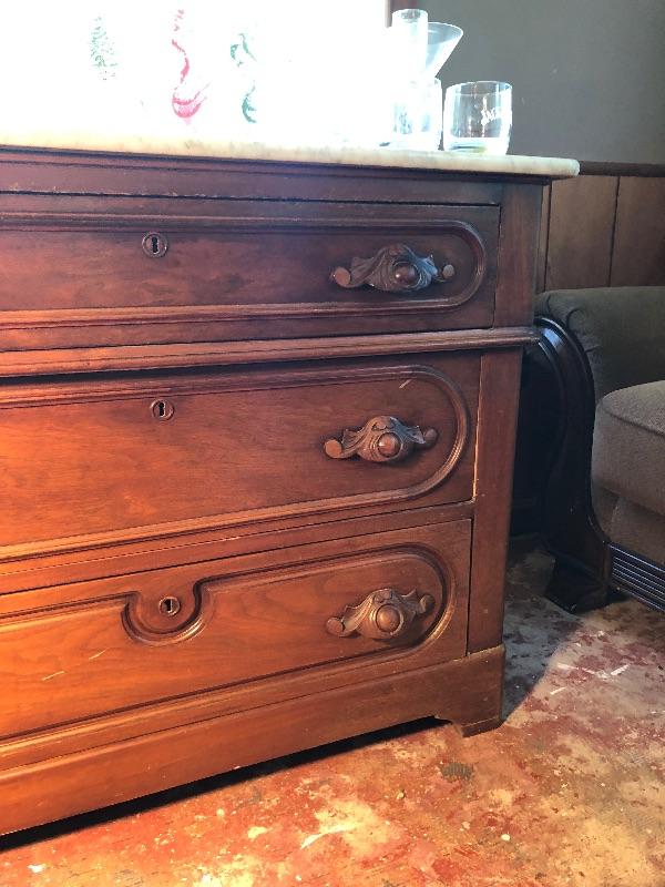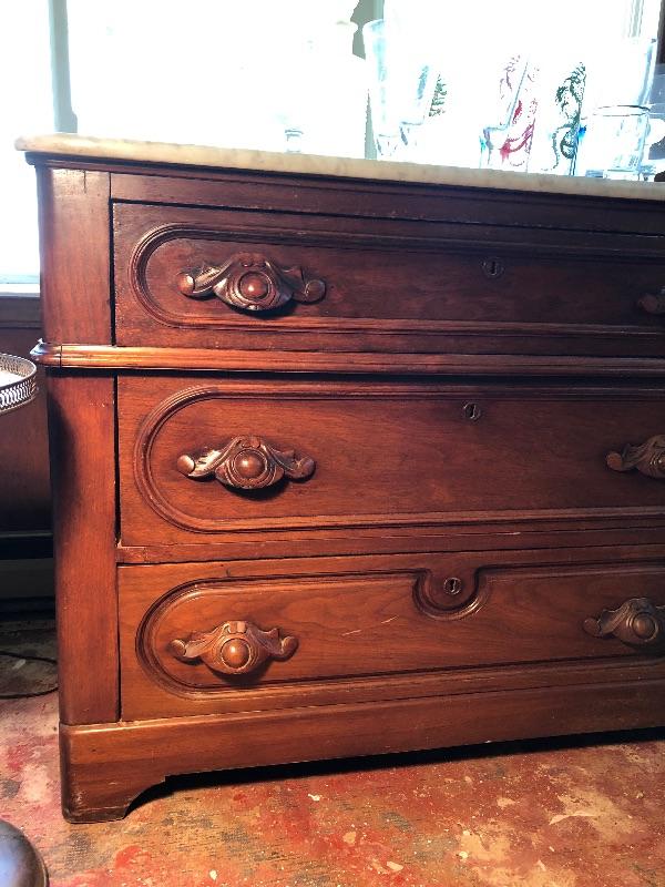 Solid Marble Topped Victorian Dresser with Locking Drawers (key can be easily accessed online - drawers are currently unlocked)