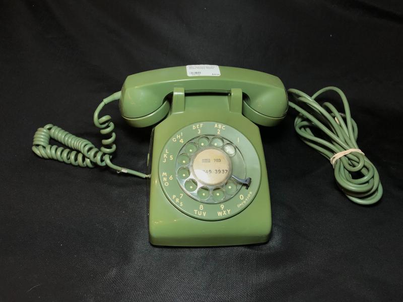 Rotary phone by Western Electric in avocado green. Dated to 1957.