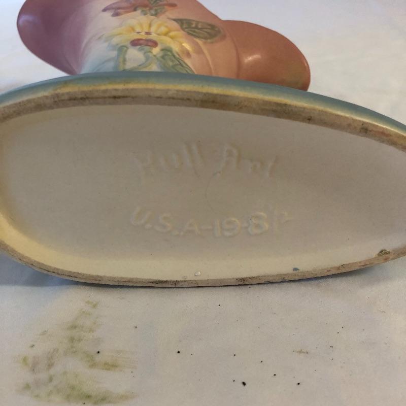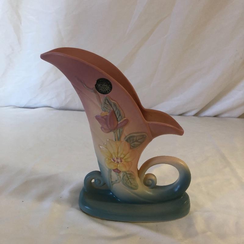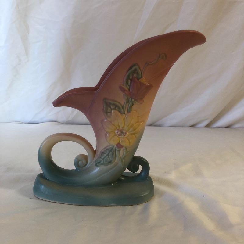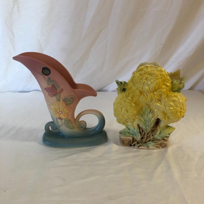 Add these two beauties to your collection or they will make great gifts. Lot includes McCoy vase and a Hull cornucopia. Cornucopia measures 7” x 3.25” x 8.5”.