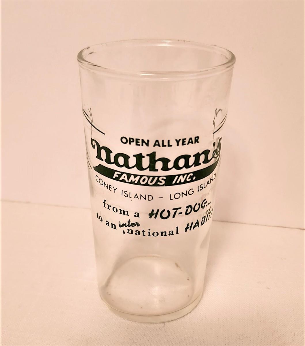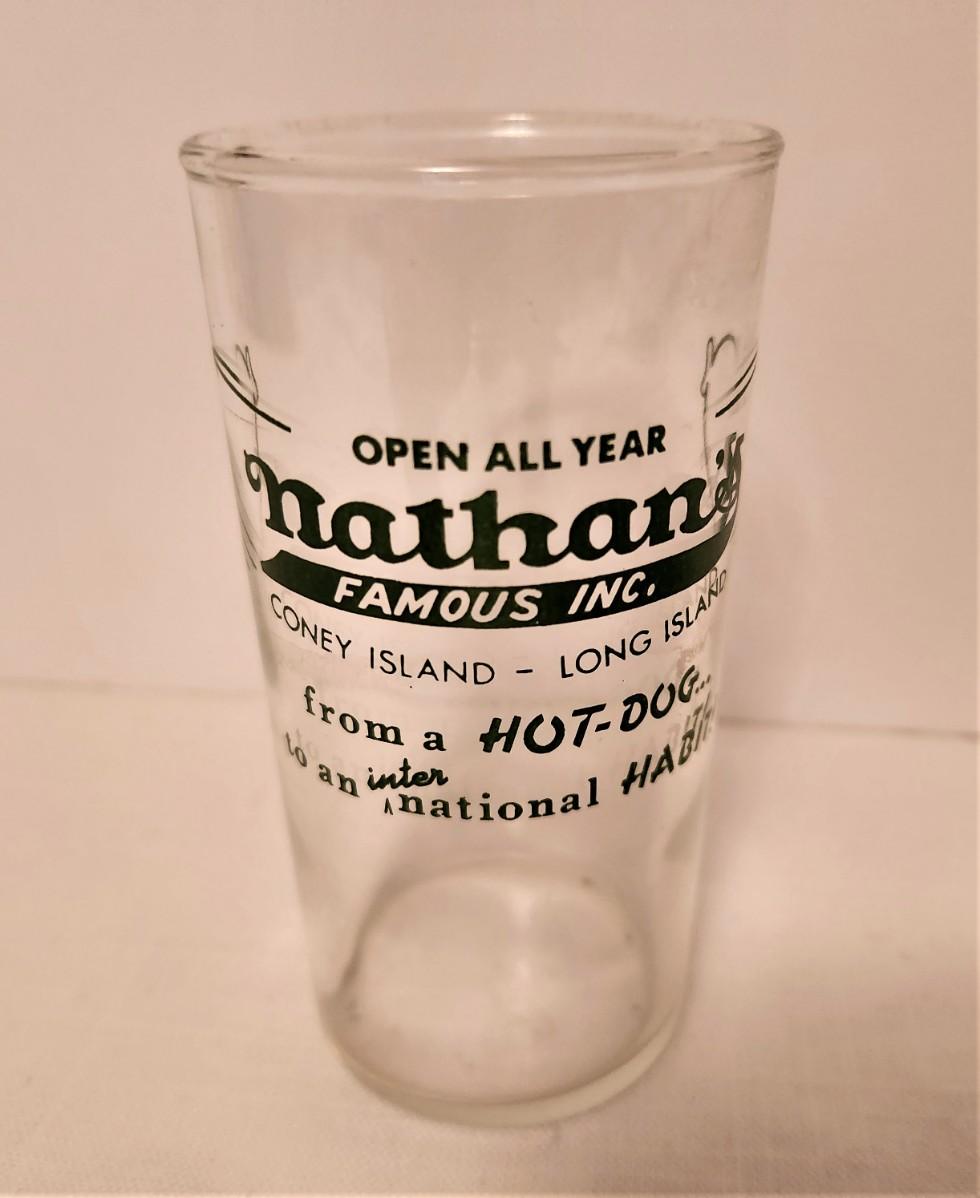 Lot #6  Original Nathan's Famous Coney Island hot dog glass - 1940s-50s