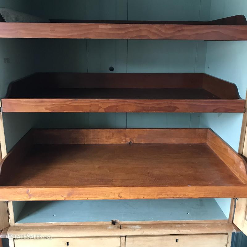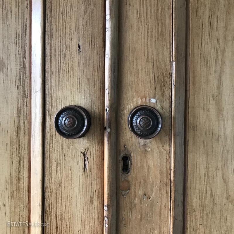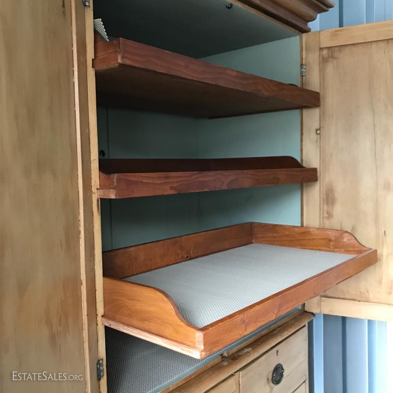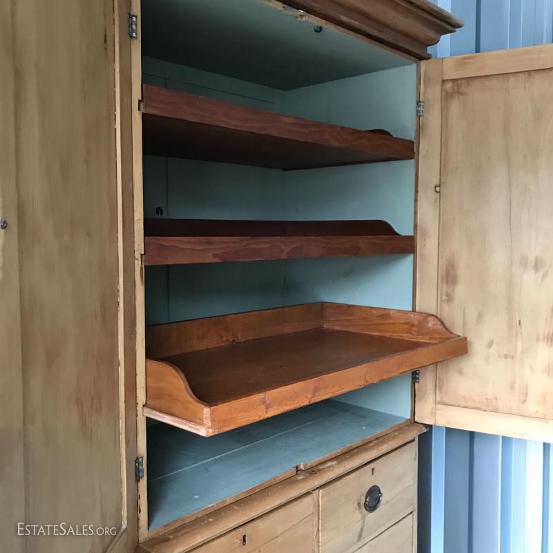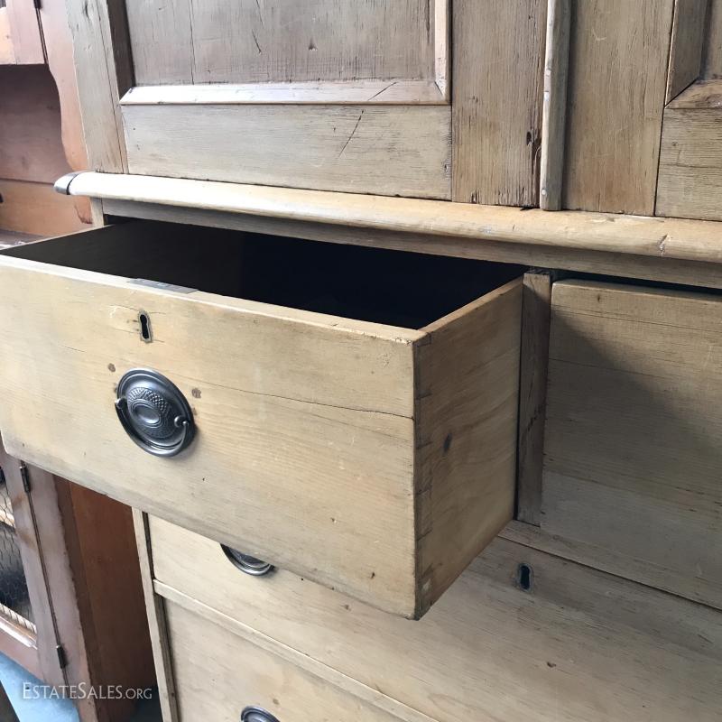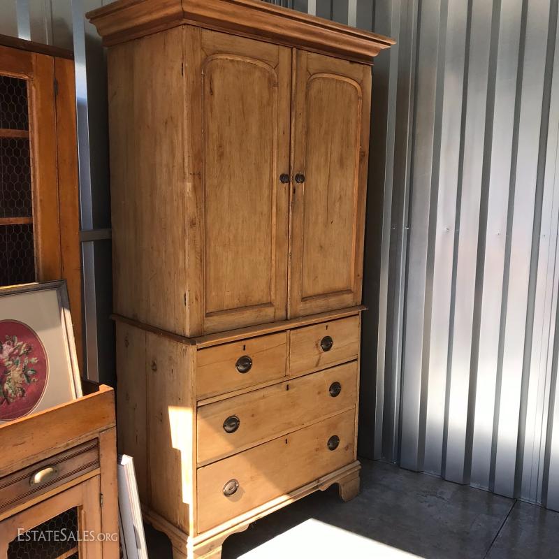 3 piece rustic armoire with 4 drawers on bottom and sliding shelves in top cabinet. Unit measures 46” x26” x87” with top crown measuring 46” x26” x4.5” and top cabinet measures 40” x22” x44” and bottom drawers measure 42” x24” x30”. Take top cabinet and top molding off and just use as a dresser. Great versatile piece with tons of storage options. This item is avaialable for local pick up in Asheville, NC only.
