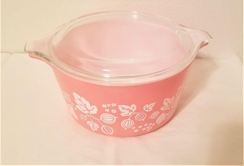 Lot #6 PYREX Pink Gooseberry bowl with lid