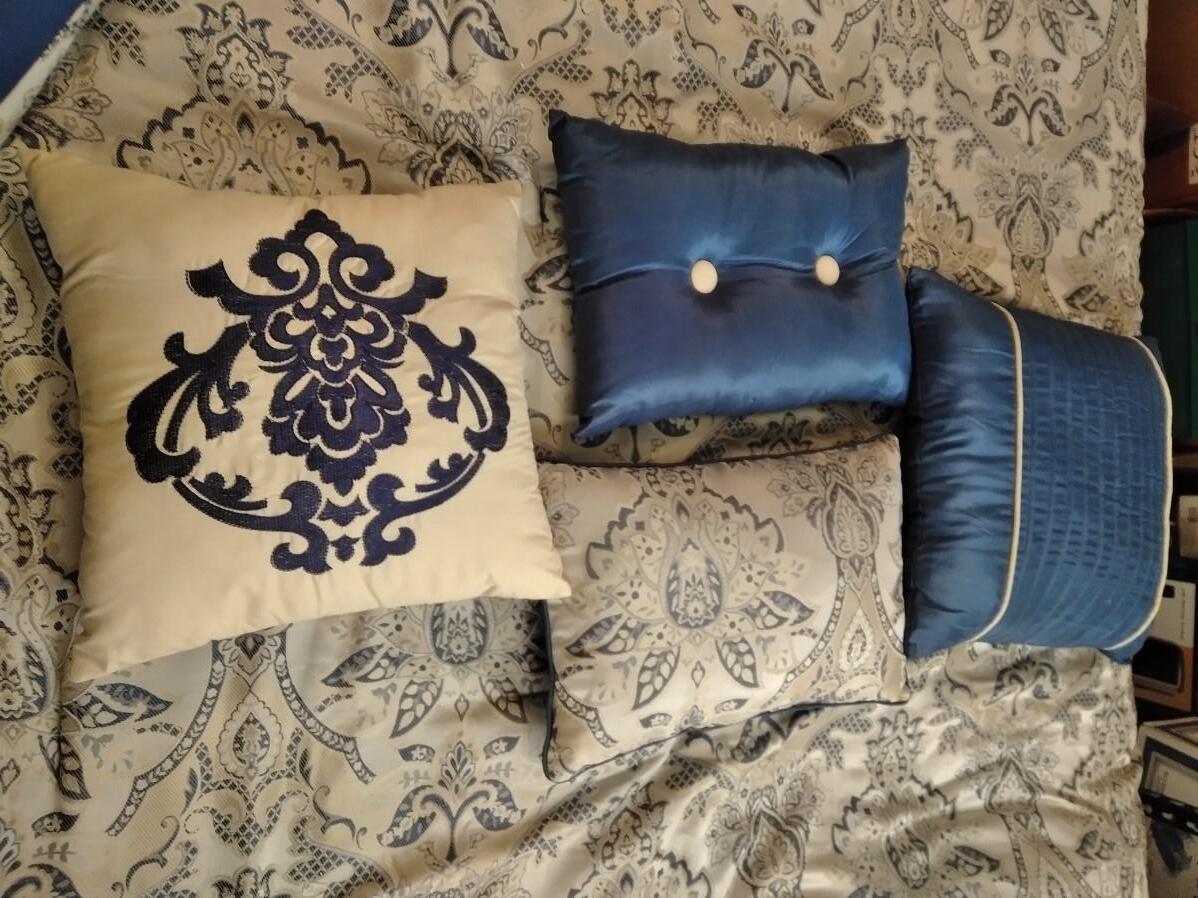 LOT 6 QUEEN / KING BEDDING AND THROW PILLOWS