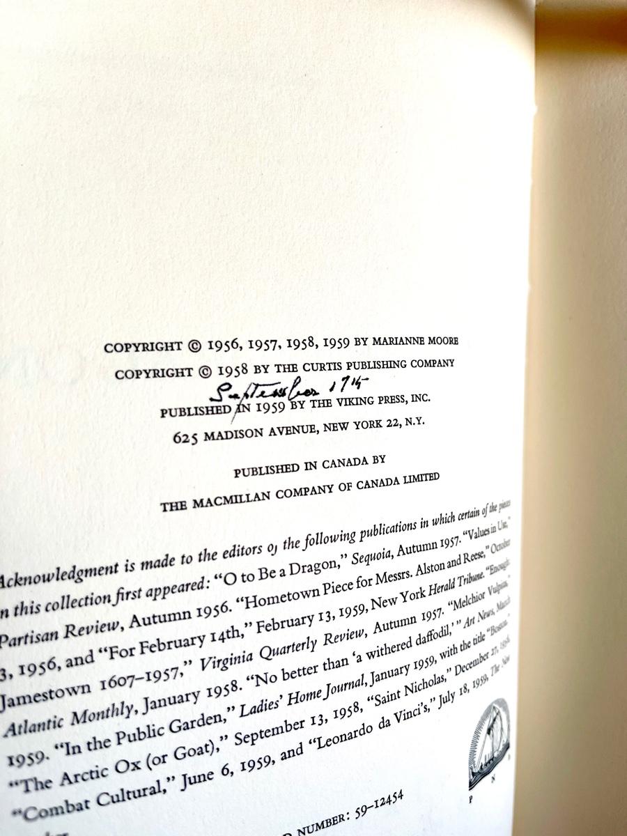 LOT 6 -  SIGNED Marianne Moore - O To Be A Dragon - Poetry Book