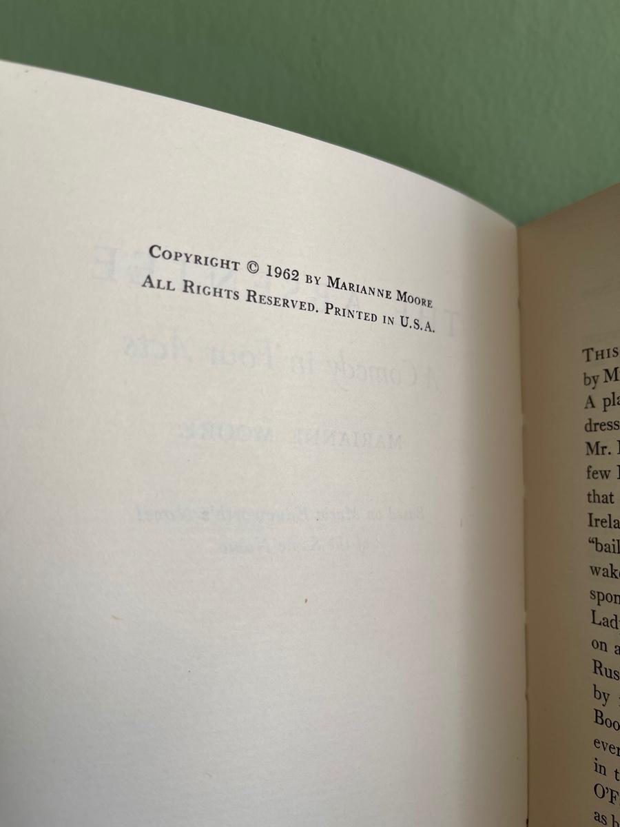 LOT 9 - SIGNED Marianne Moore - The Absentee - a Comedy in Four Acts. This book is Signed with a personal inscription to David from 1962. It also is a first edition which was limited to three hundred copies. This was is no. 125. Inner pages and very clean and neat. It does not have a dust jacket.