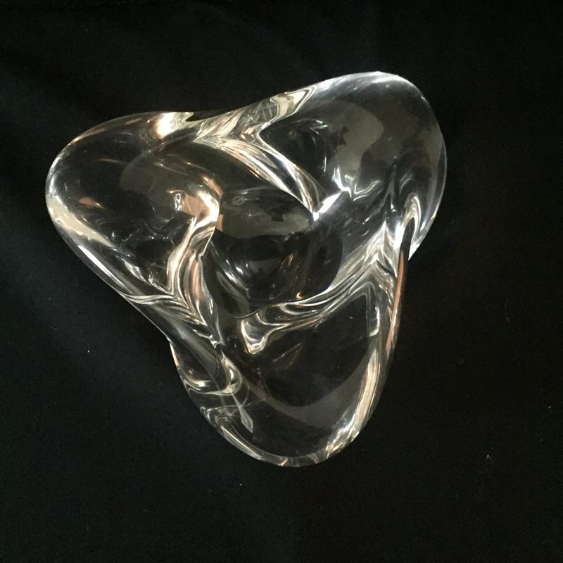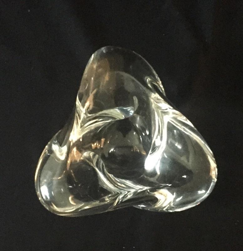 St Louis signed crystal art glass bowl and unmarked crystal squirrel. St Louis bowl measures 3” tall and 7” across.
