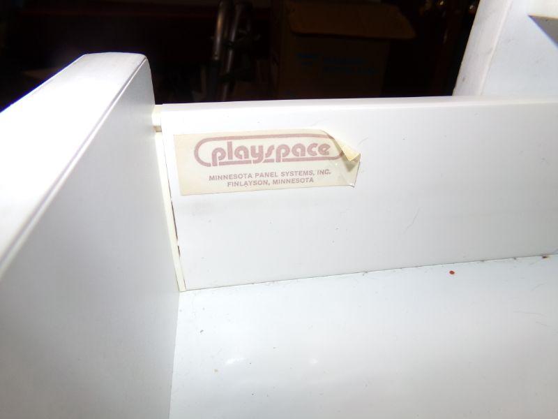 5 DRAWER MEASURES 32X19X41 MADE BY "PLAY SPACE" IT HAS RUBBER TRIM THAT IS COMING LOOSE AND SOME DIRTY SMUDGES THAT CAN BE CLEANED