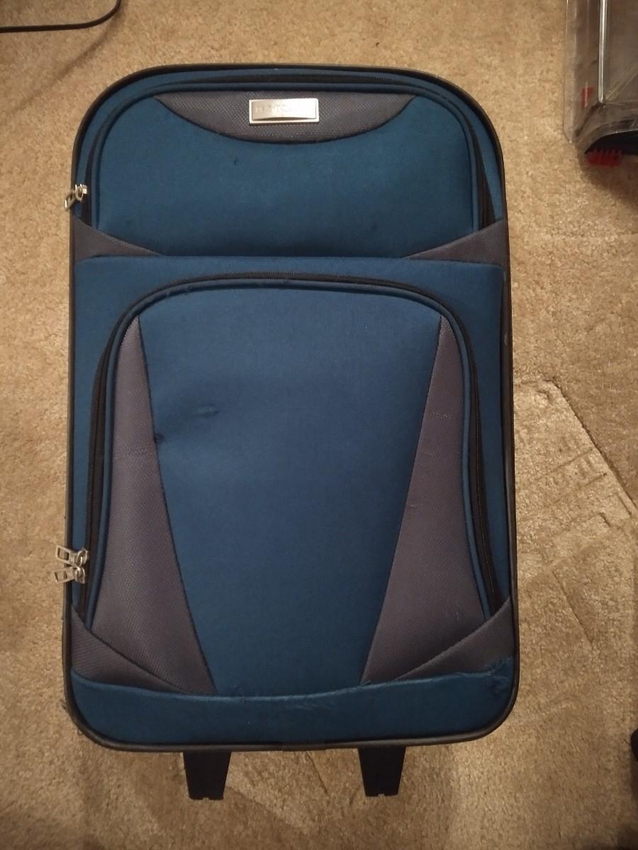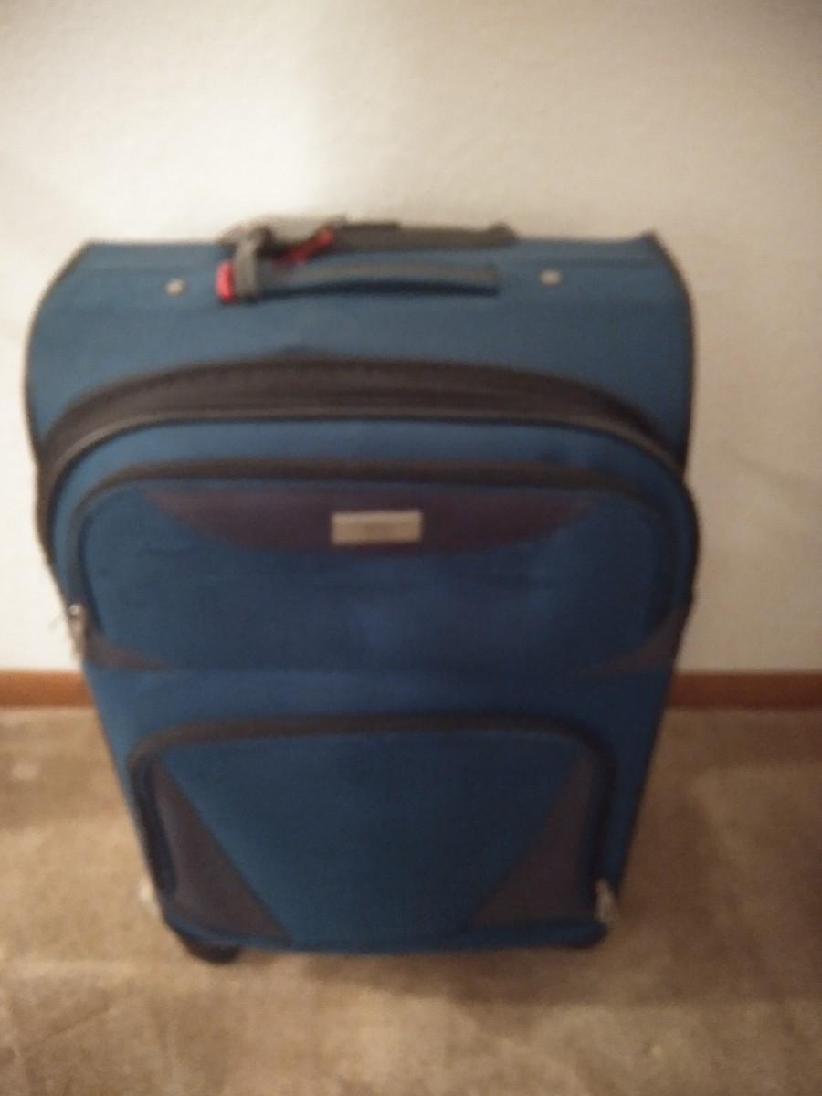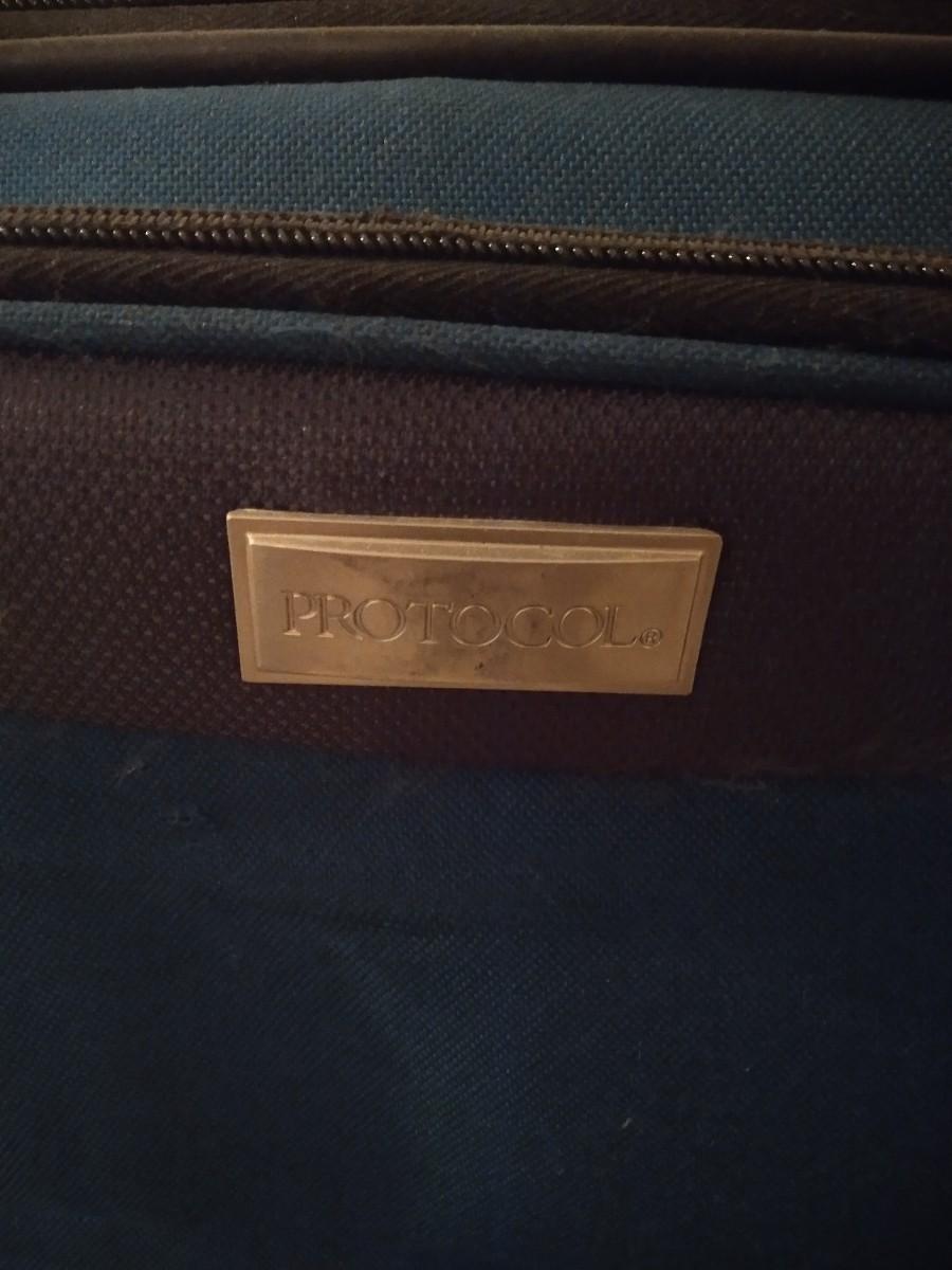 TWO BLUE AND BLACK PROTOCOL SUITCASES AND TWO NYLON BAGS. (one bag has snag as shown)