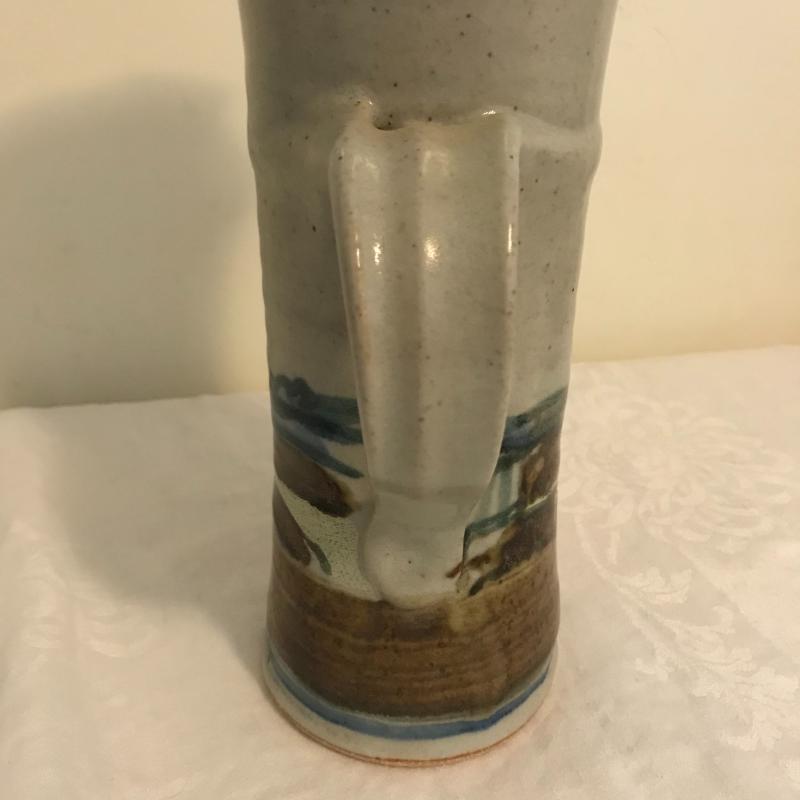 Gorgeous signed 11.75” tall grey and blue pitcher has been well cared for. No signs of wear. Local pick up or shipping available.