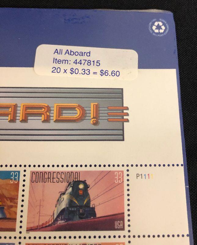 Lot #6 US Postage Stamps All-A-Board Sheet of Train .33