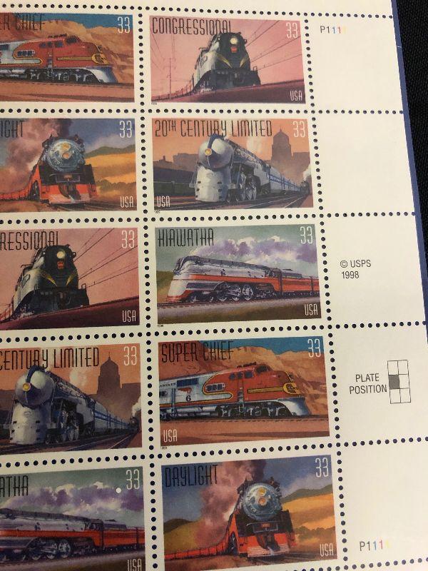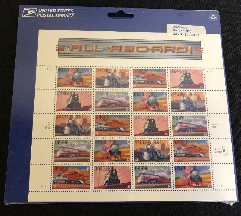 Lot #6  US Postage Stamps All-A-Board Sheet of Train .33
