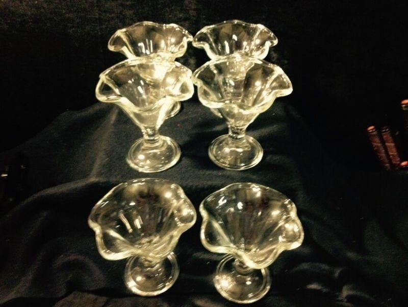 I absolutely adore this scalloped look for ice cream dishes. Seems to bring back memories of ice cream back when. These are vintage clear glass ice cream dishes made in Italy (stamped on base of dish). Approx 5.5 x 5.5 inches. (Shipping Weight Approximately 9 lbs)